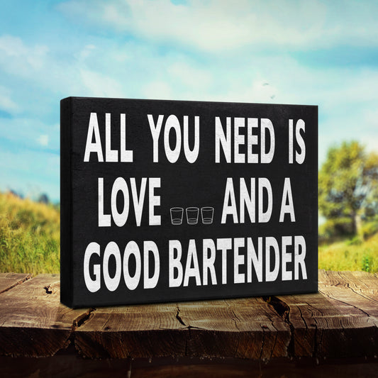 All You Need is Love and a Good Bartender Sign and Gift