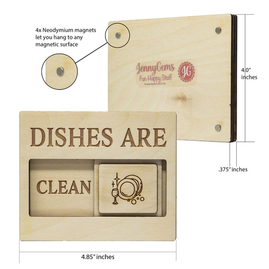 JennyGems Dishwasher Magnet Clean Dirty Sign, Wooden Slider Indicator, Easy to Read Laser Cut Words, Made in USA
