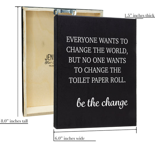 JennyGems Funny Farmhouse Bathroom Signs, Everyone Wants To Change the World But No One Wants To Change the Toilet Paper, Funny Bathroom Decor Bathroom Signs Guest Bathroom, 6x8 Inch Wood Sign