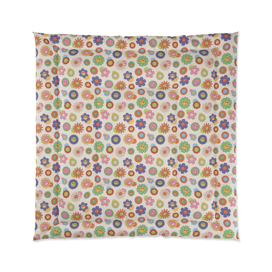 Retro Hippie Flower Bedding Comforter | 1960s Comforter and 1970s Themed Comforter, Flower Power Boho Vintage Inspired