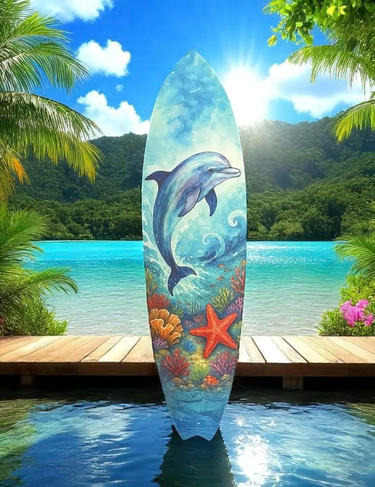 Dolphin Surfboard Decorative Beach House Wall Decor, Ocean Animal Wall Sign
