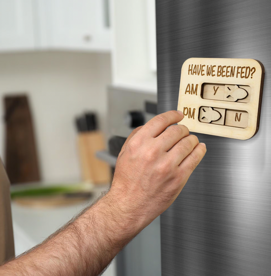 Cat Feeding Reminder Magnet, Have We Been Fed, Cat Feeding Tracker AM PM, Feed the Cat, Wooden Reminder Slider for Fridge
