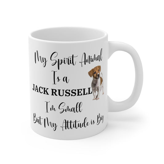 My Spirit Animal Is a Jack Russell Ceramic Mug, Funny Dog Lover Gift, Small Dog Big Attitude Coffee Cup, 11oz White Ceramic Mug