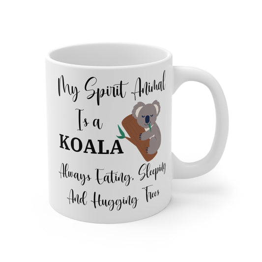 My Spirit Animal Is a Koala Ceramic Mug, Funny Koala Lover Gift, Always Eating Sleeping and Hugging Trees Coffee Cup, 11oz White Ceramic Mug