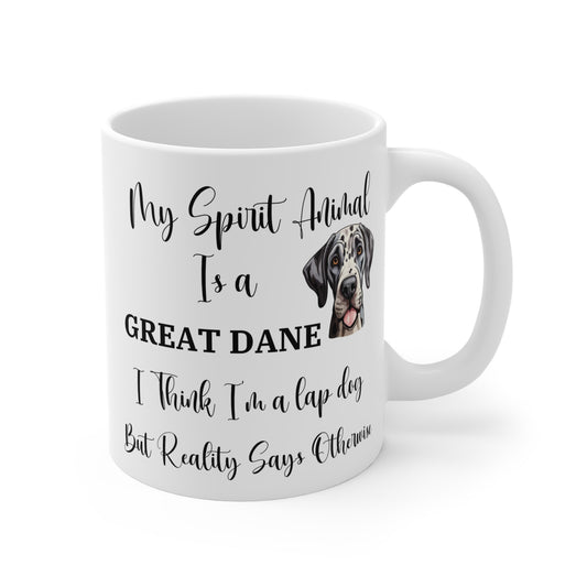 My Spirit Animal Is a Great Dane Ceramic Mug, Funny Dog Lover Gift, Lap Dog Reality Joke, Great Dane Owner Coffee Cup, 11oz White Mug