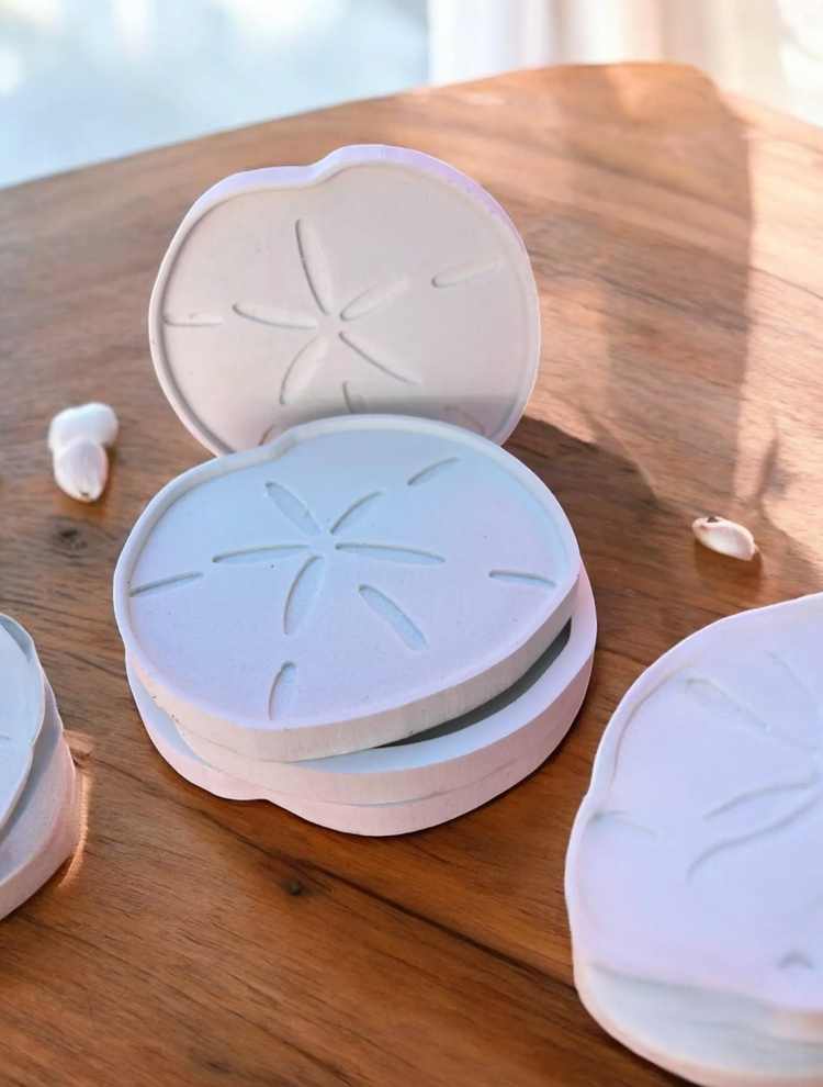 Sand Dollar Shaped PVC Coasters - Waterproof Coastal Drink Coasters, Durable Beach-Themed Home Decor, Set of 4
