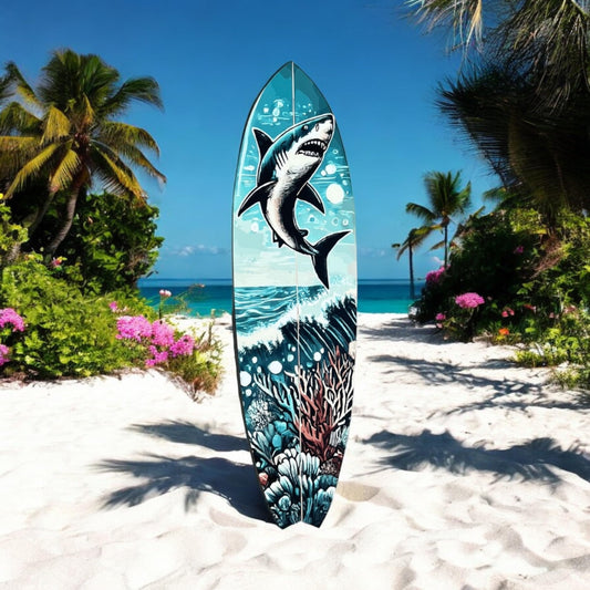 Indoor Outdoor Shark Surfboard Wall Decor
