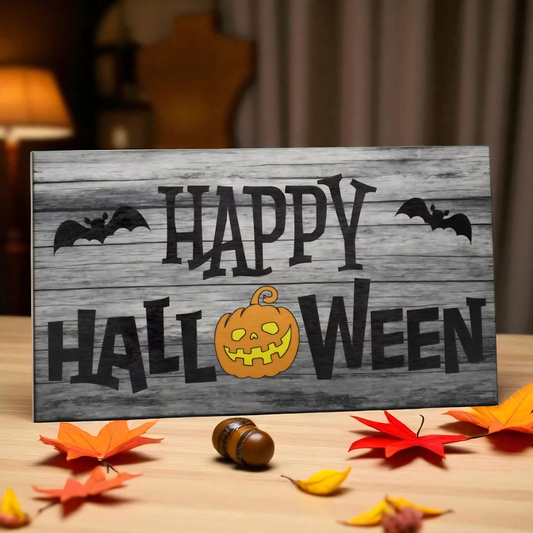 Rustic Happy Halloween Sign – Farmhouse Wooden Style Pumpkin and Bat Décor, Fall Mantel or Shelf Decoration, Halloween Gift