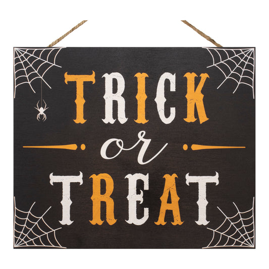 JennyGems Halloween Decor, Trick or Treat Sign, Halloween Decorations, Halloween Door Sign for Front Door, 10x12 Inch Wood Sign Halloween Wall Decor, Fall Decor, Halloween Party Decorations