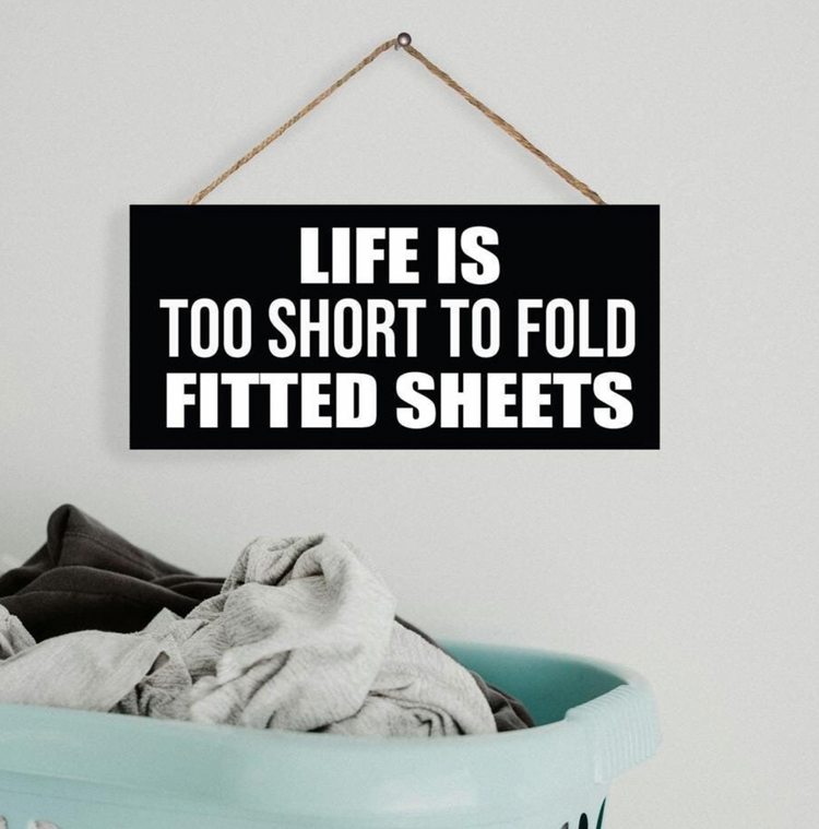 JennyGems Laundry Sign, Sarcastic Laundry Decor, Funny Laundry Room Decor, Laundry Signs For Laundry Room Decor, Life Is Too Short To Fold Fitted Sheets, 13x6 Inches, American Made