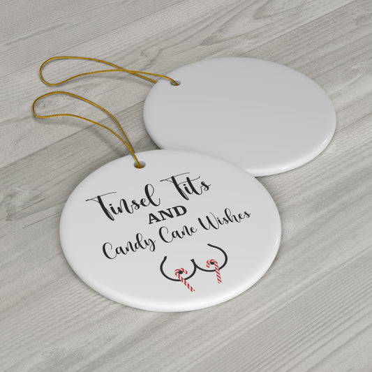 Tinsel Tits and Candy Cane Wishes Ornament, Funny Christmas Tree Decoration, Humorous Holiday Gift, Inappropriate Adult Humor Offensive