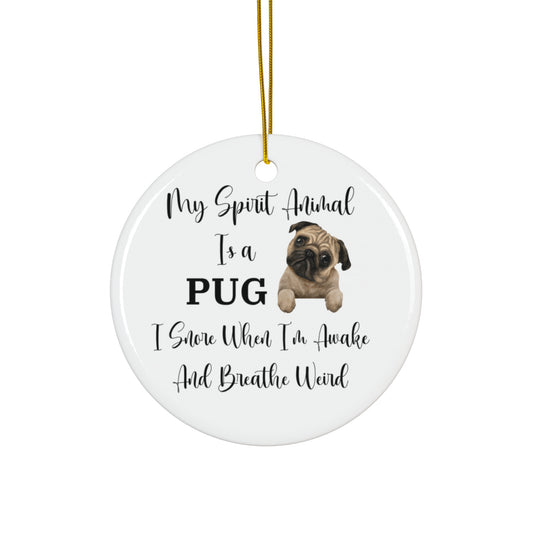 Pug Ornament, Fun Animal Lover Gift, Pug Spirit Animal Decor, Snoring and Breathing Quote, Funny Ornament, Christmas Gift, Holiday