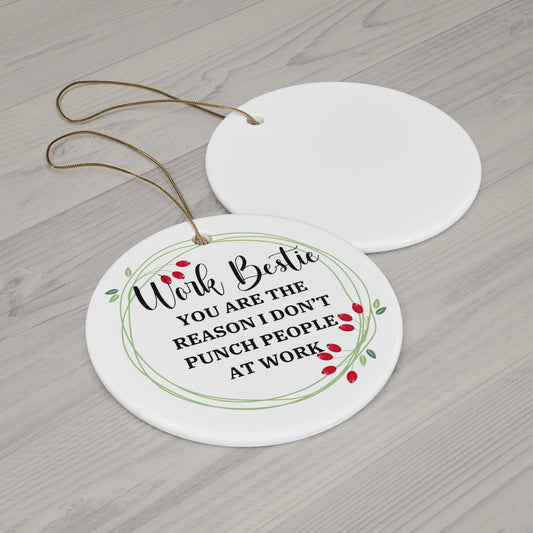 Work Bestie Ornament, Funny Office Gift, You're the Reason I Don't Punch People, Sarcastic Christmas Decoration, Work Friend Gift