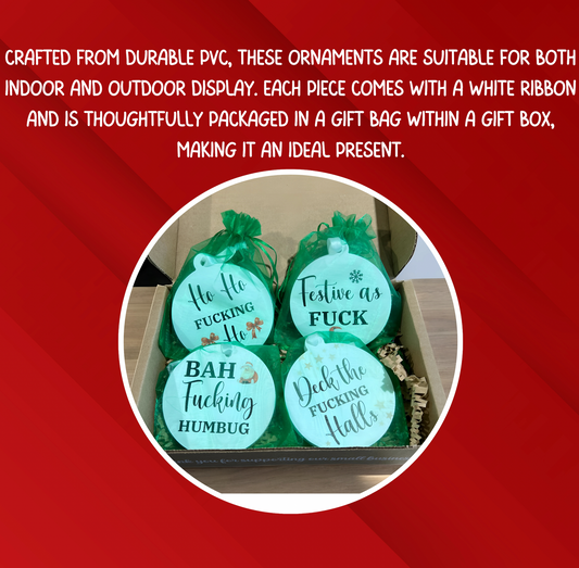 Set of 4 Offensive Funny Ornaments – F Word Gift Box with Curse Words, Warning - Not Your Grandma's Ornaments