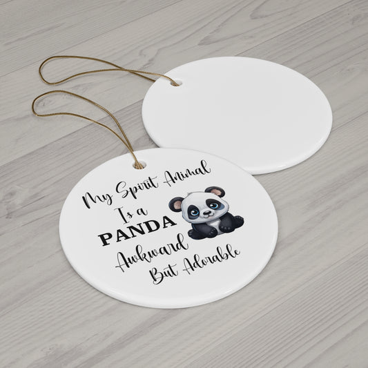 My Spirit Animal Is a Panda Ceramic Ornament, Funny Awkward But Adorable Gift, Cute Animal Christmas Tree Decoration, Panda Lover Ornament