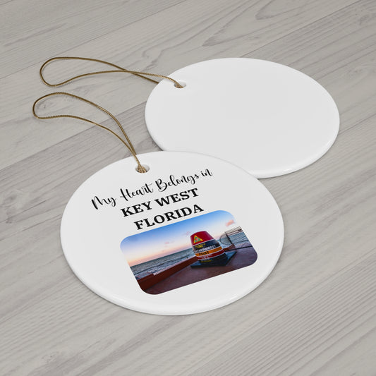 My Heart Belongs in Key West Ceramic Ornament, Iconic Marker Photo, Florida Souvenir, Key West Christmas Decoration, Vacation Memory Gift
