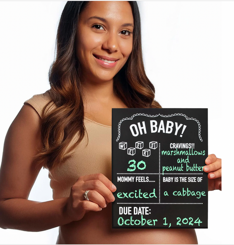 JennyGems Pregnancy Announcement Chalkboard, 11.5"x14.5" Reusable Weekly Pregnancy Tracker Photo Prop Board, Monthly Milestones Baby Bump Countdown, Pregnancy Timeline Wood Chalkboard Sign