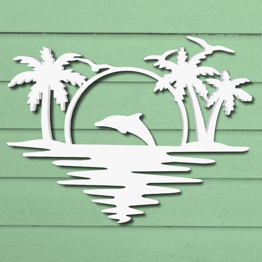Indoor Outdoor Dolphin Wall Art, Coastal Wall Decor for Beach House, White PVC Dolphin Sign