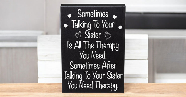 Funny Sister Gift Sign β Sometimes Talking to Your Sister Is Therapy β Rustic Wooden Box Sign, Farmhouse Shelf Sitter