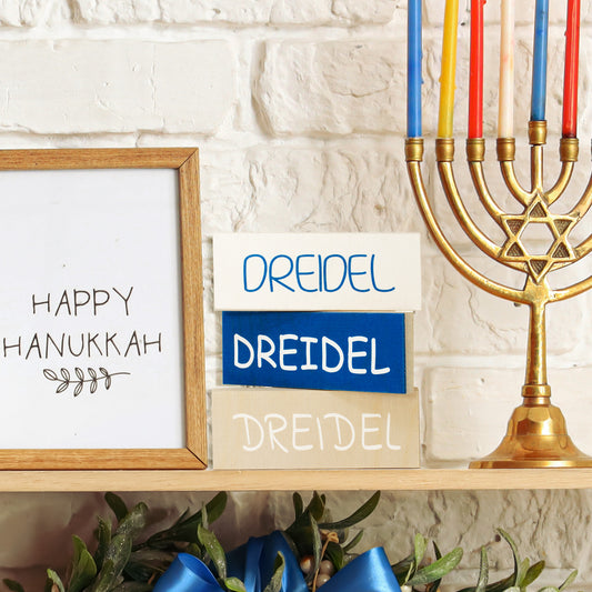 Hanukkah Decorations, Dreidel Dreidel Dreidel 3pc Mini Wooden Block Set, Tiered Tray Decor, Dreidel Decor, Made in USA
