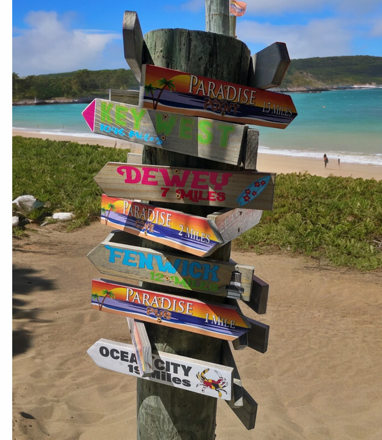 Destination Sign Arrow for Signpost, Directional Key West Style, Customized, Travel Journey of Love Gift Idea