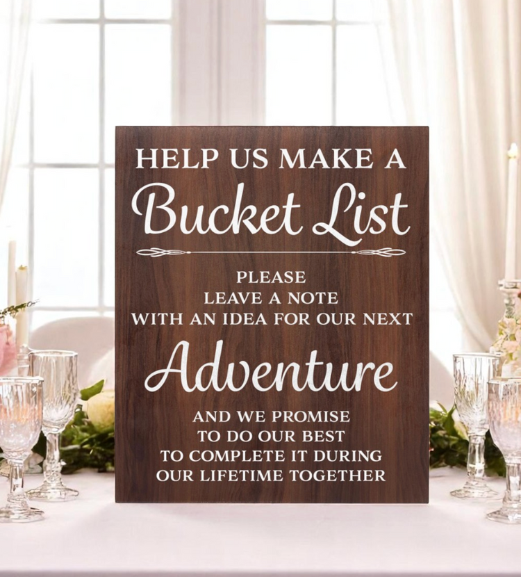 JennyGems Wedding Signs, Bucket List Wedding Decor Sign, Wedding Reception Signs, Wedding Decor, Wedding Table Decorations, Wedding Bucket List