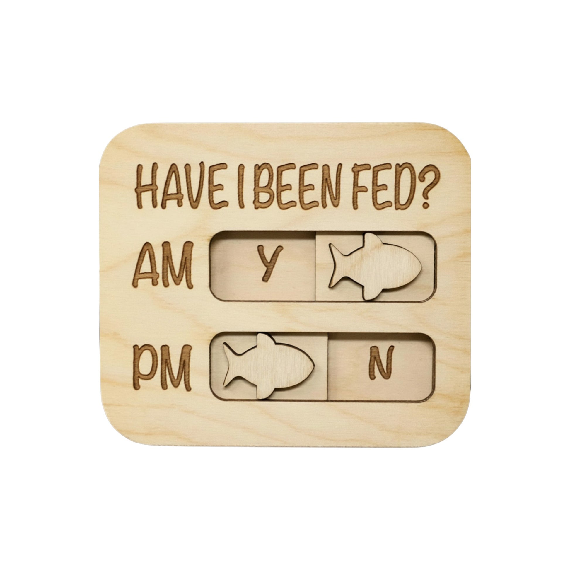 Easily track your cat’s meals with this AM/PM feeding reminder. Slide the fish to Y (Yes) or N (No) to prevent overfeeding or missed meals.