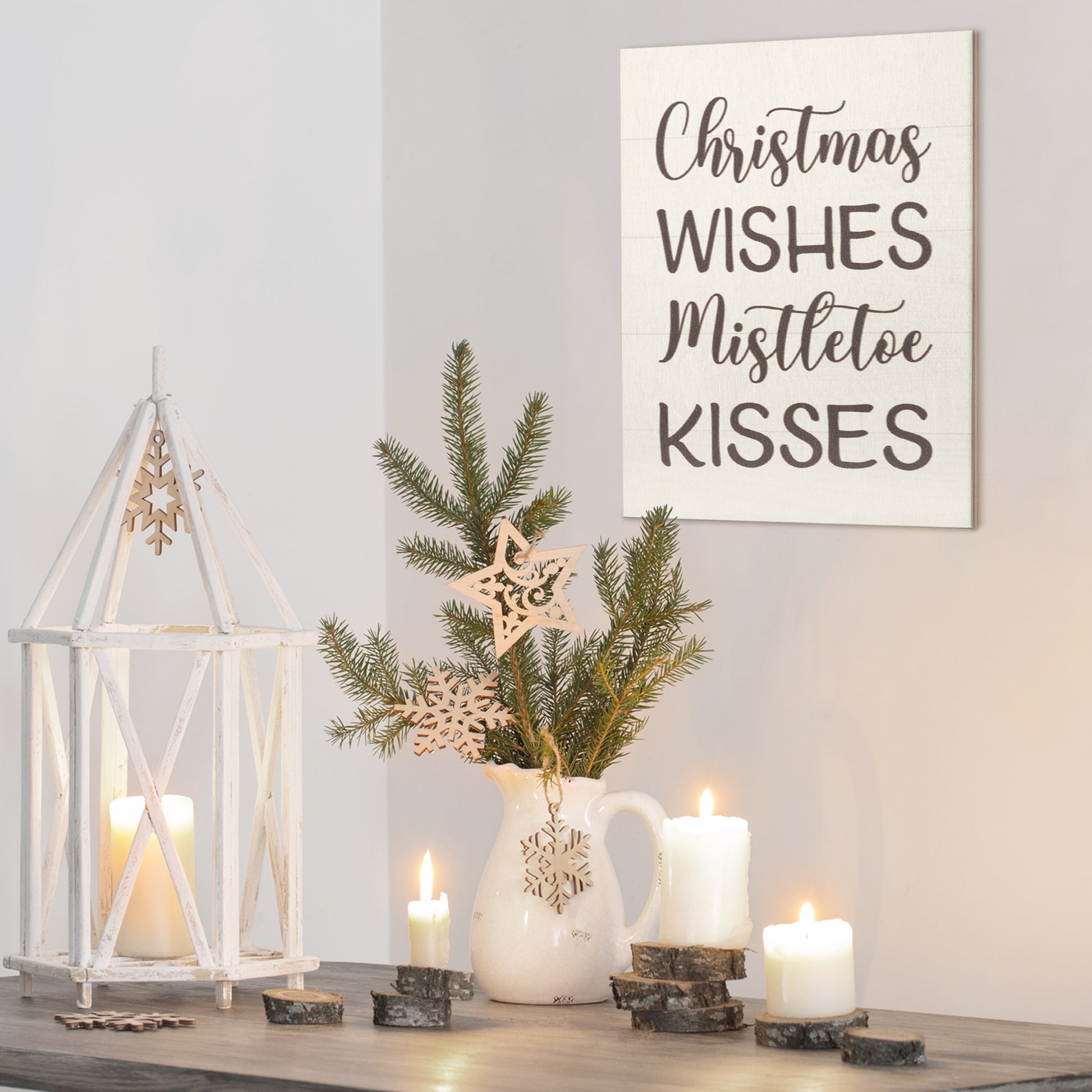 Christmas Wishes Mistletoe Kisses, 7.25x6 Inch Wood Sign, Christmas Decorations, Christmas Gifts, American Made