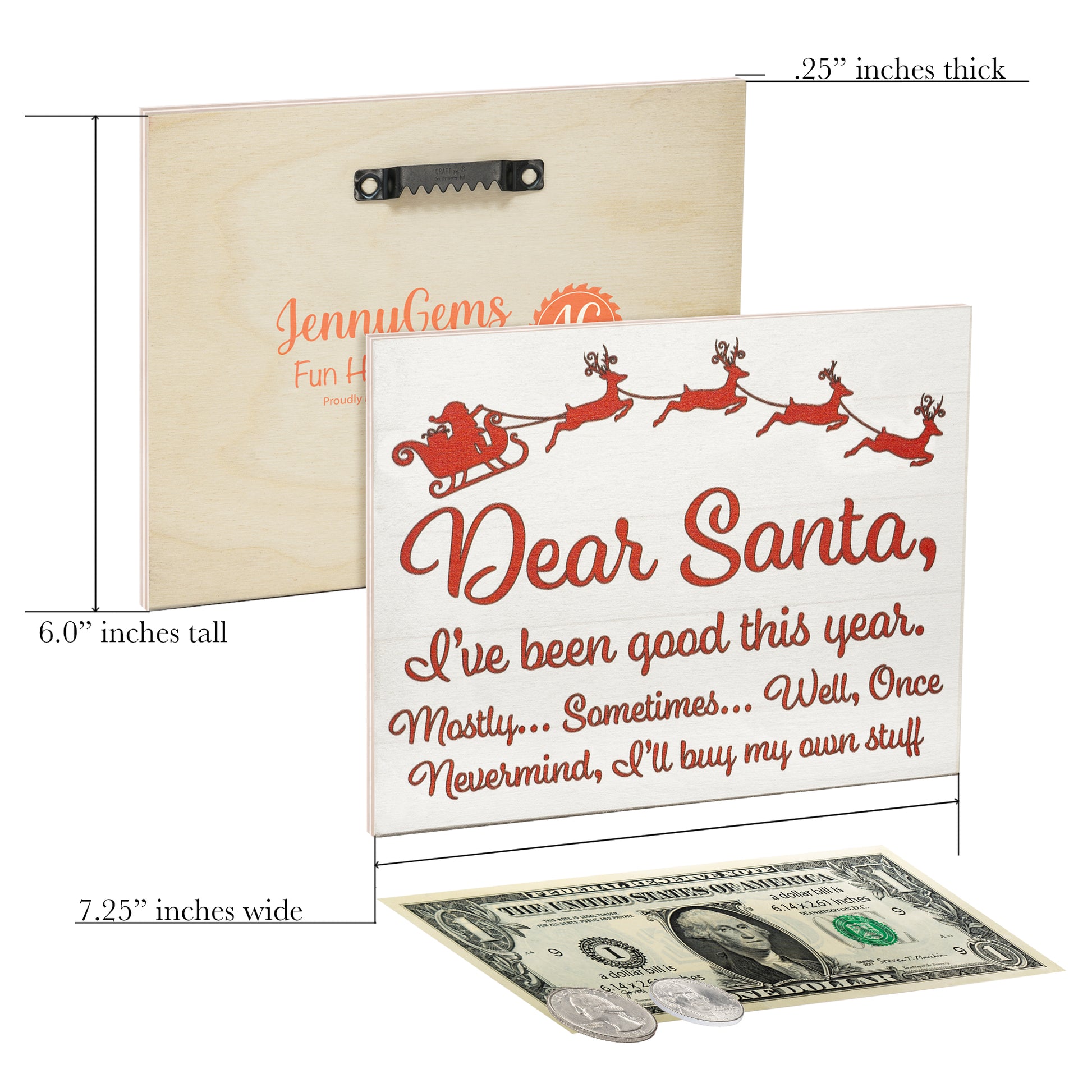 About: These small signs measure 7.25x6x.25 Inches and comes with a hook to hang on any wall. With the many different designs this Christmas collection has to offer, you can choose from traditional, sentimental, religious or even a humorous sign to meet your needs.