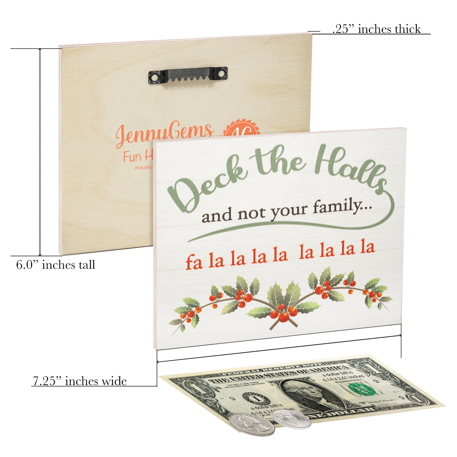 About: These small signs measure 7.25x6x.25 Inches and comes with a hook to hang on any wall. With the many different designs this Christmas collection has to offer, you can choose from traditional, sentimental, religious or even a humorous sign to meet your needs.