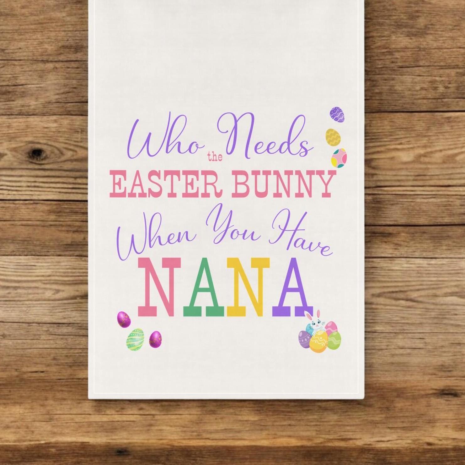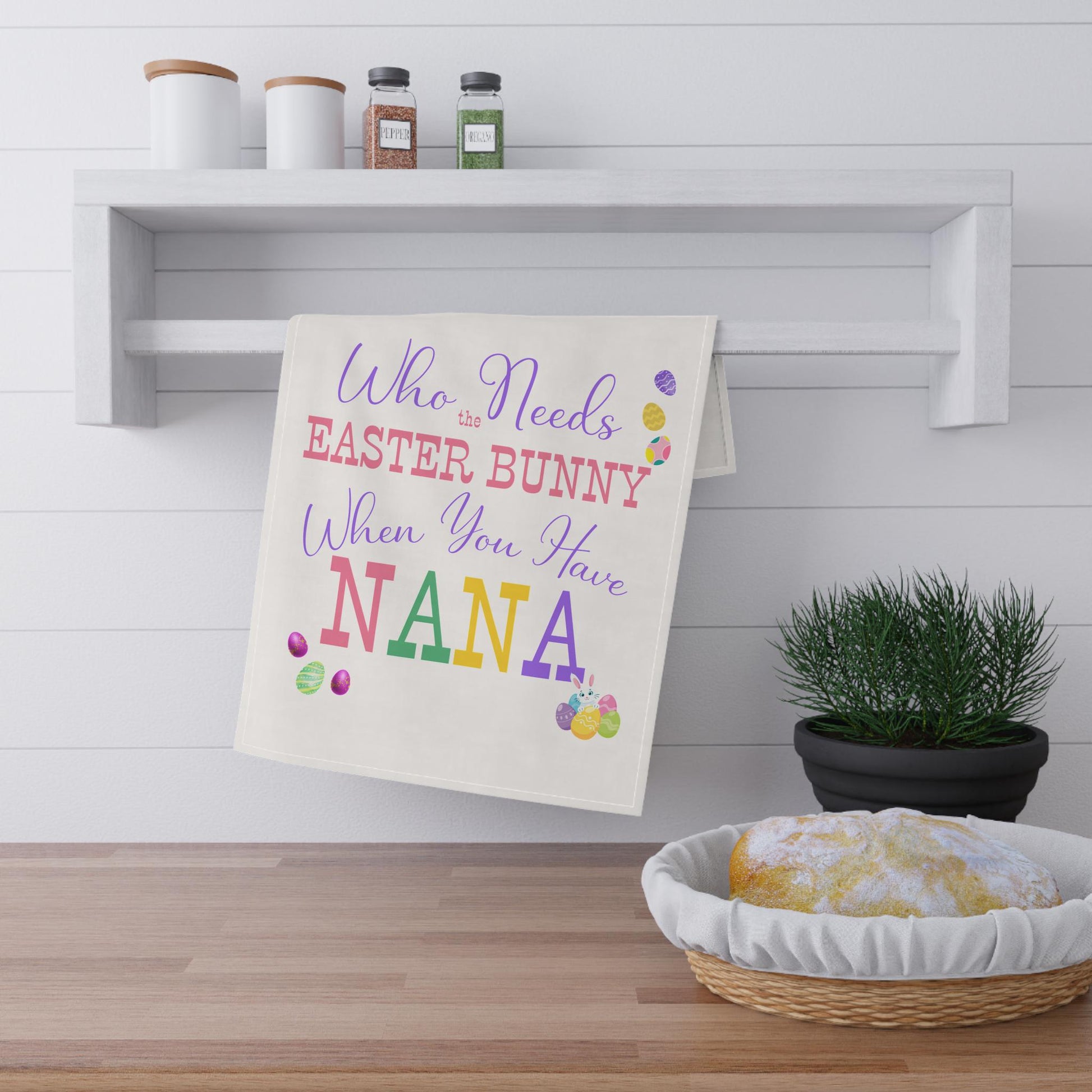 Easter Bunny Tea Towel, Nana Gift for Kitchen, Cotton Towel, Poly Towel, Easter Theme Decor, Kitchen Decor