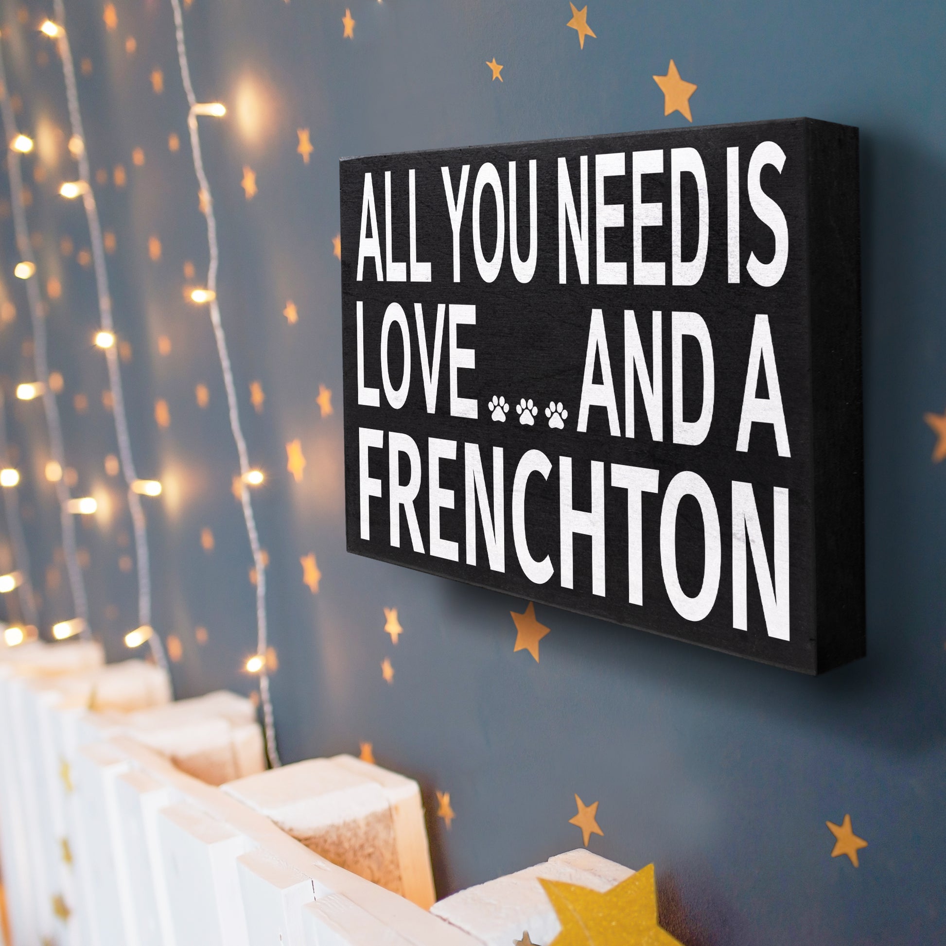 JennyGems All You Need is Love and a Frenchton Wooden Sign, Frenchton Dog Mom, Frenchton Gifts, Shelf Sign and Wall Hanging