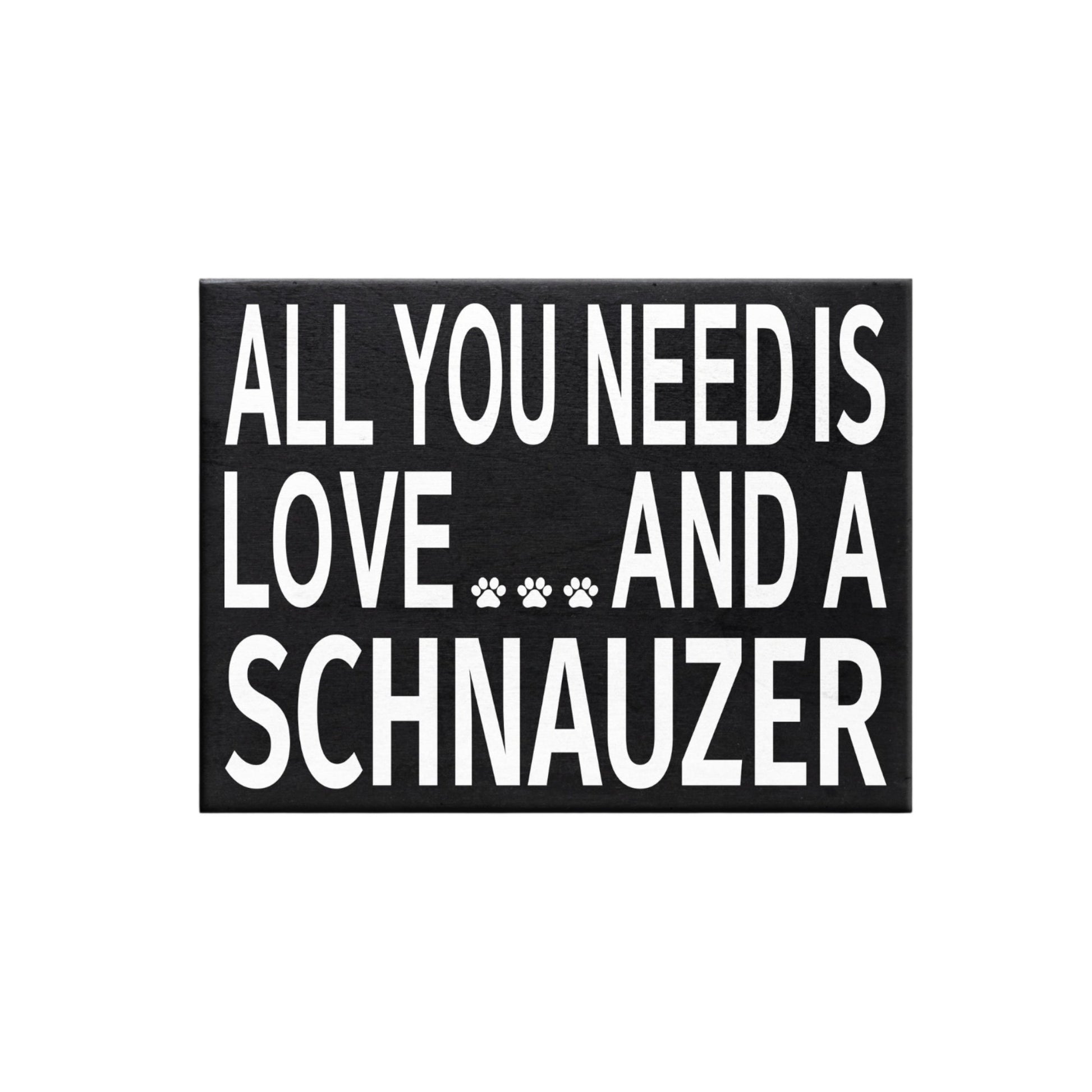All You Need Is Love And A Schnauzer Sign Handcrafted from premium solid wood, this 8x6x1.5 inch sign celebrates Schnauzer devotion with timeless appeal. Stands freely on shelves and desks or hangs with the included sawtooth hanger. Built to endure, it's ideal for living rooms, kitchens, bedrooms, and offices. A meaningful gift for any Schnauzer lover.