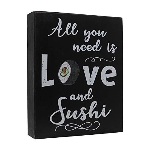 JennyGems- All You Need is Love and Sushi - Love Sayings - Real Wood Sign - Funny Gift Gifts - I Love You Gifts, Sushi Decor - Sushi Gifts, Shelf Knick Knacks