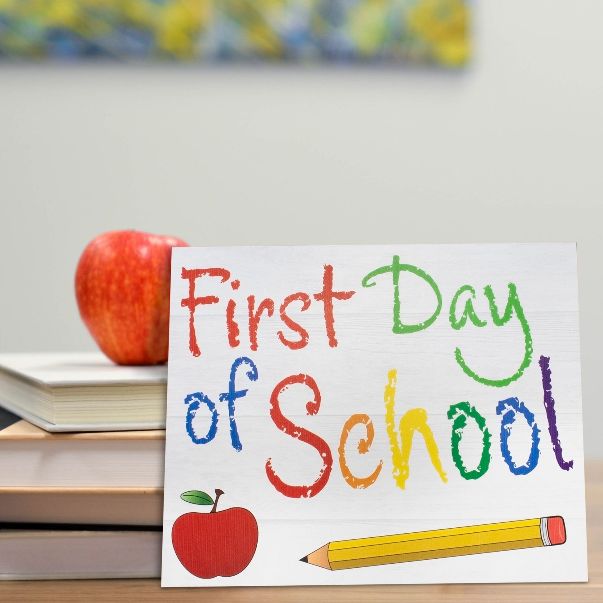 Knick knacks like this are great for a first day of preschool sign, or for kindergarten supplies. Plaques with this classic quote are also good present ideas for your niece, nephew, son, daughter, or even cousin! School decorations are good accents for any homeschool area, Help keep their minds focused by hanging school themed decor on the wall! Great reversible sign to document your child's first day and last day of school! Watch them grow so much in just one short year! Reuse it again and again! With only one board to keep track of, you won't have to worry about losing it when it comes time to take more pics! It is the little things and little moments that are cherished the most and stuff like this 2 sided board help you document and remember these moments. You can also start a new tradition and hang the two comparison photos next to each other to see how big your little one has gotten! This is exactly what you need for back to school merchandise! Cute quotes about school are also a fun quirky photo prop for the young at heart college student! Have a blast doing a photoshoot every season not only to track the milestones, but to decorate your home with adorable pictures of your kids!