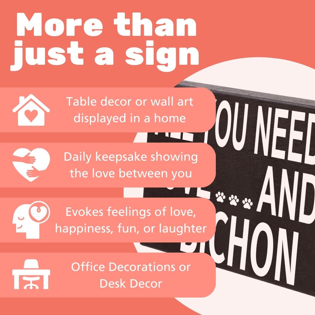 JennyGems Bichon Sign, Bichon Gifts, All You Need Is Love and a Bichon 8x6 Inch Wood Sign, Made in USA