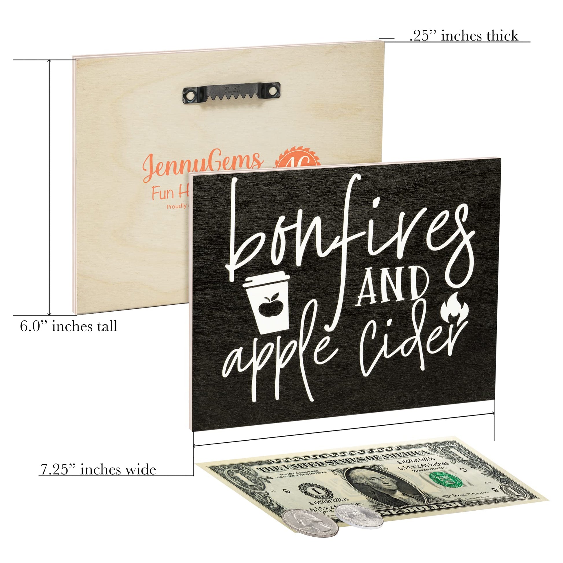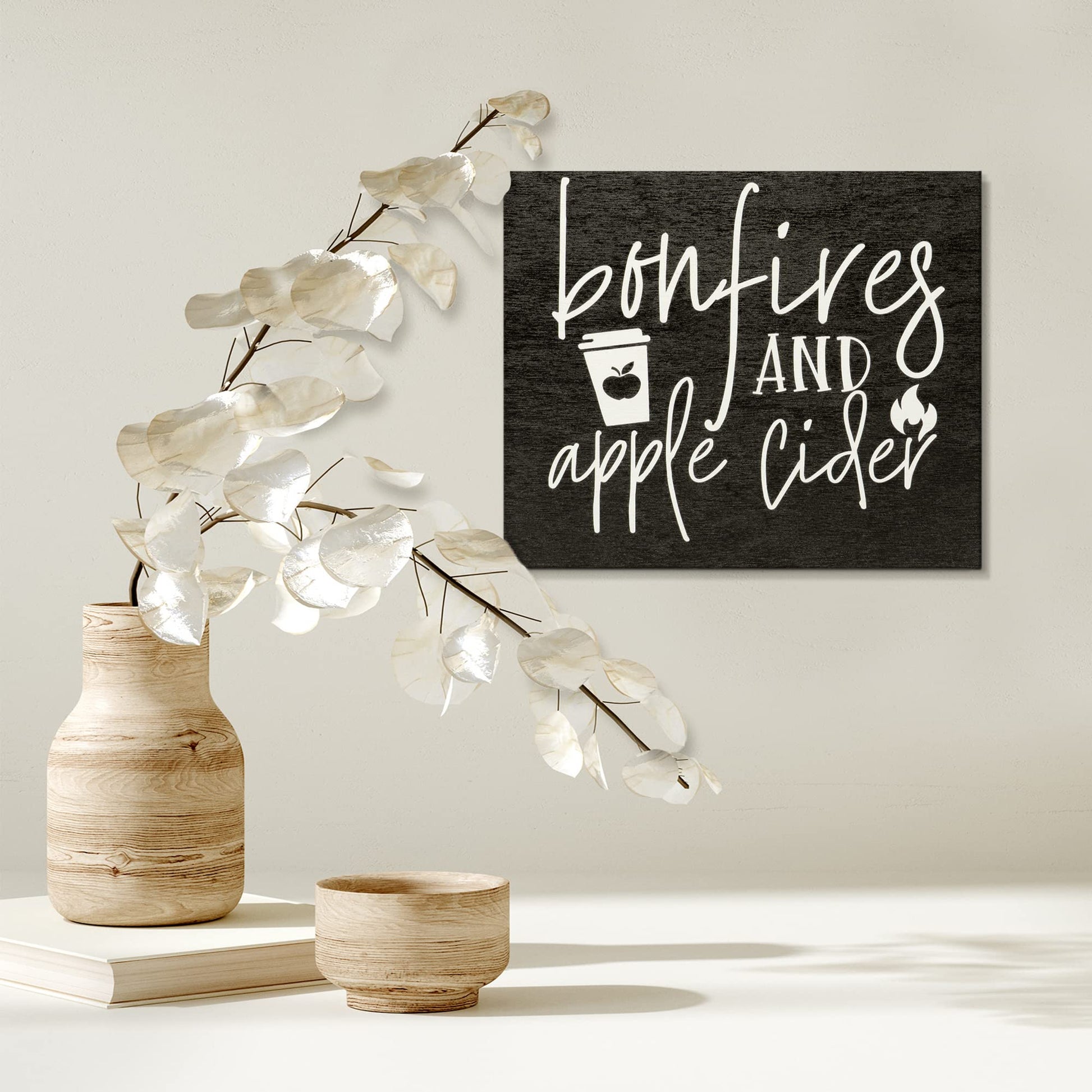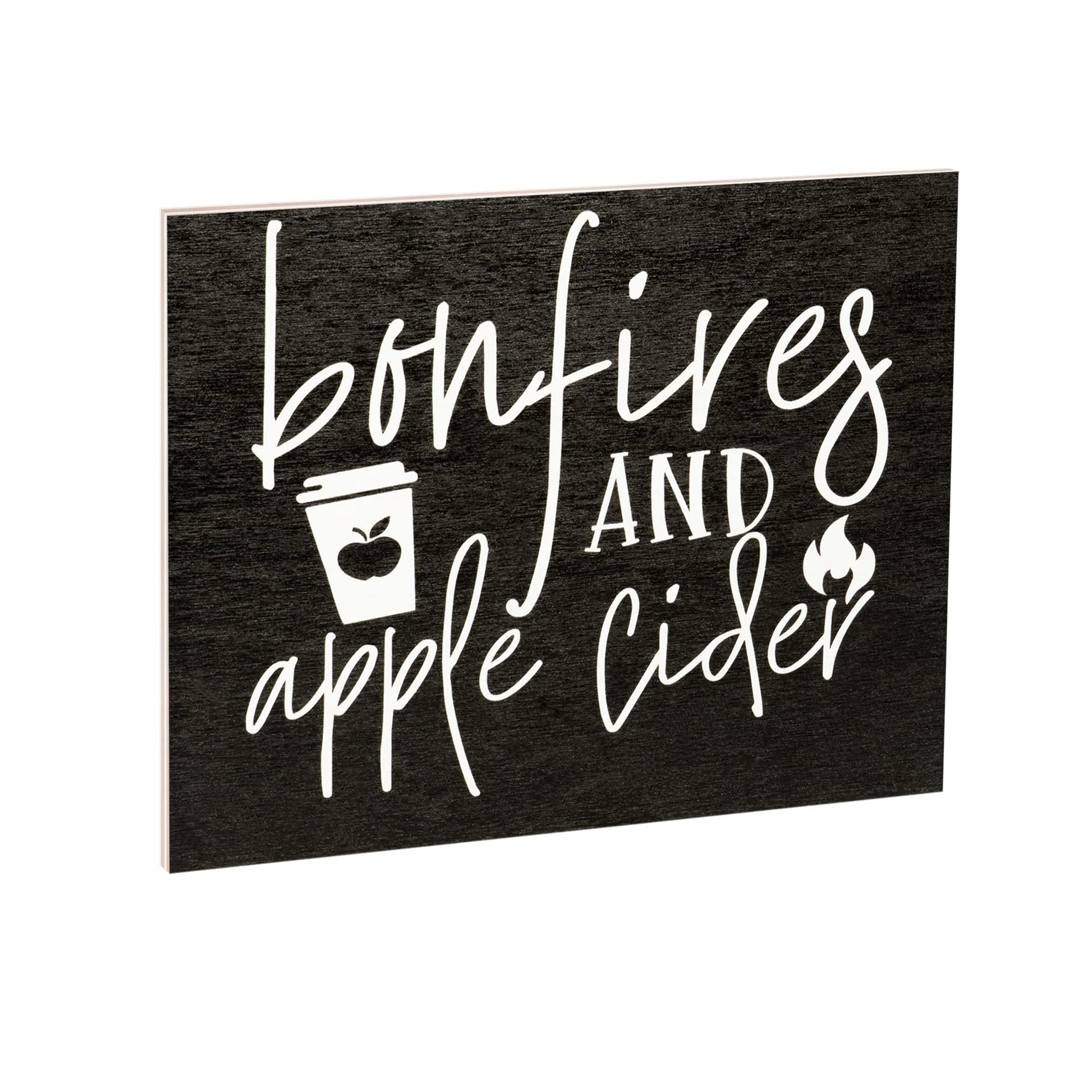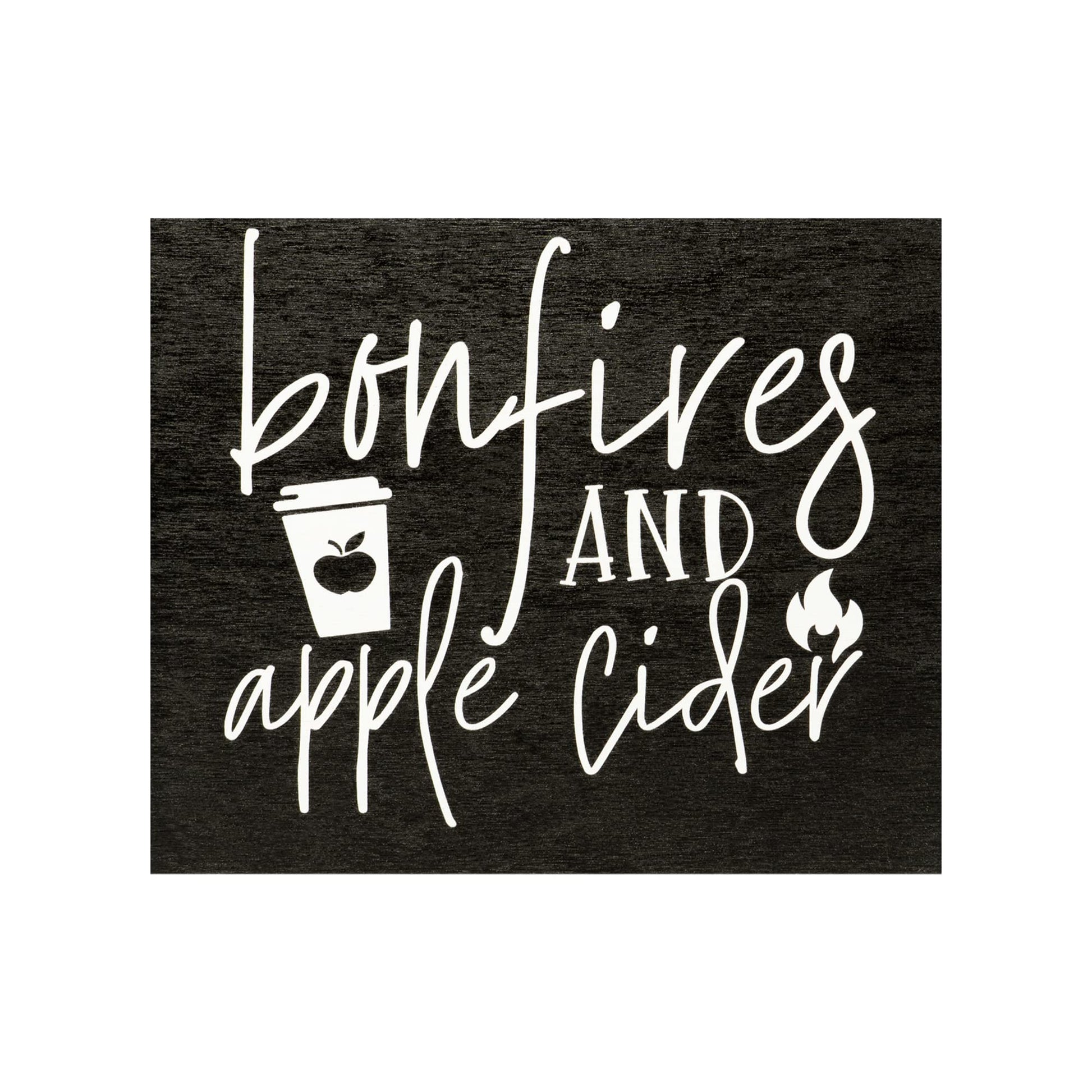 Charming fall wall decor crafted in Delaware. This black wooden sign captures the warmth of bonfire and apple cider season, making it an ideal accent for any room during autumn months.