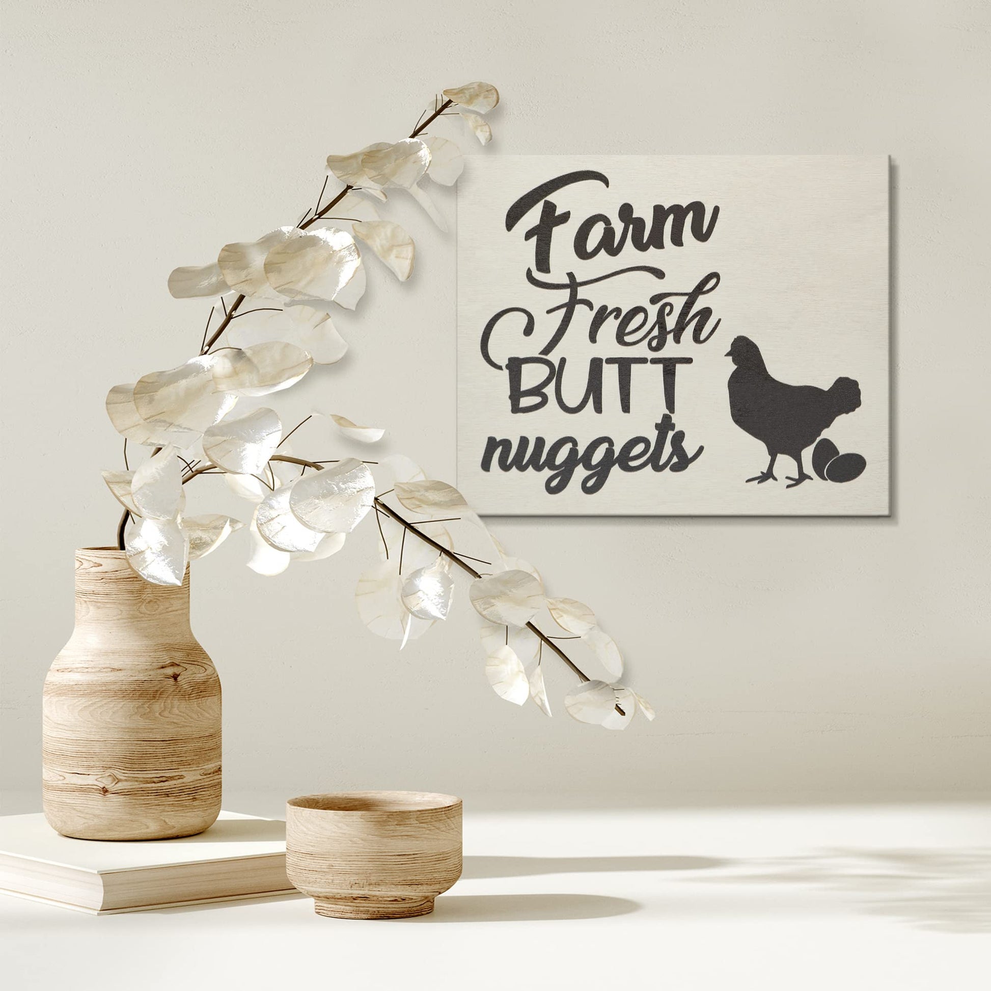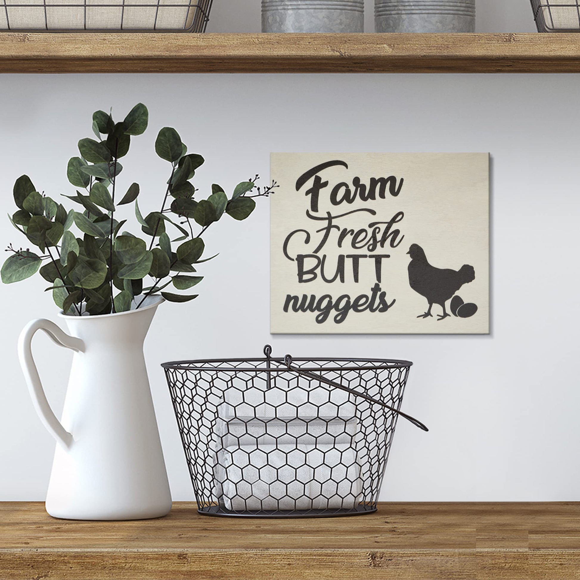 The Farm Fresh Nuggets wooden sign brings rustic charm to any space. Handcrafted in Delaware, this farmhouse wall decor features a humorous chicken-themed design perfect for poultry enthusiasts and country home lovers alike.