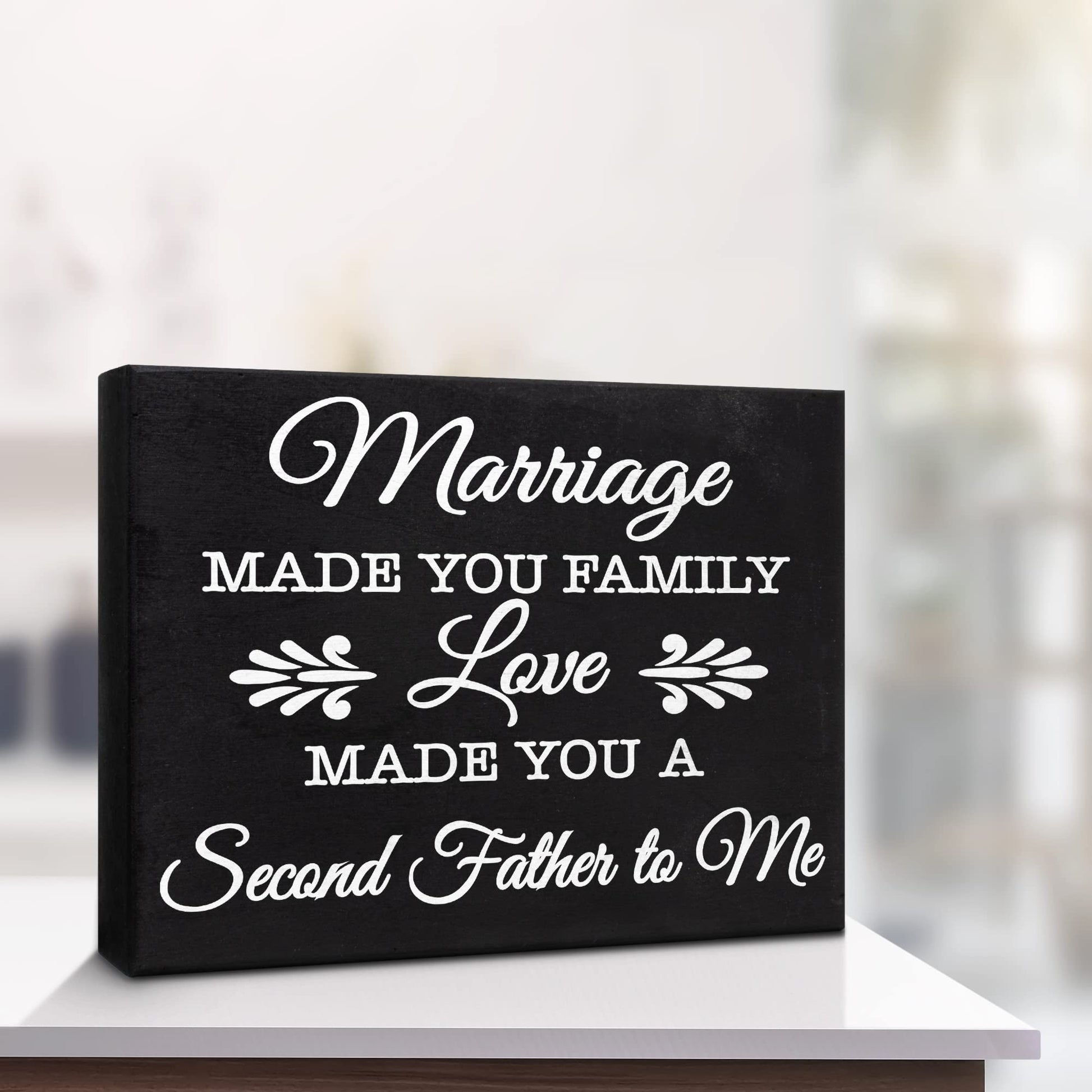JennyGems Father in Law Gifts, Marriage Made You Family Love Made You a Second Father To Me Wooden Sign, Shelf Decor Wall Hanging, Made in USA