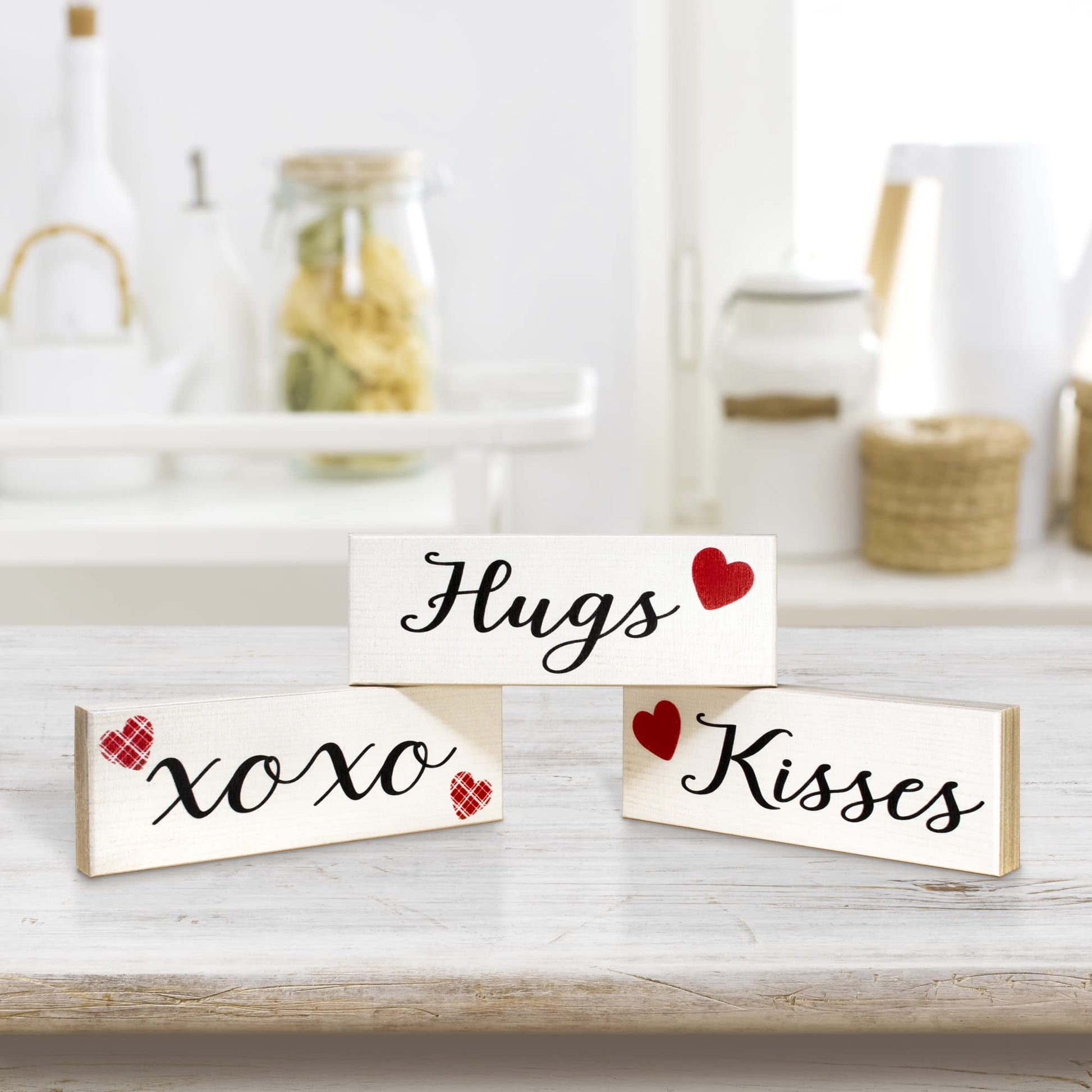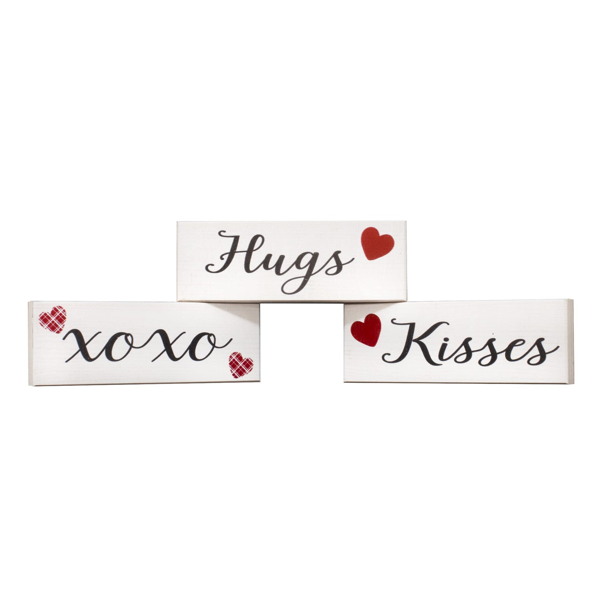 Hugs and Kisses Signs, 3pc Wooden Block Set, Valentine's Day Decor
