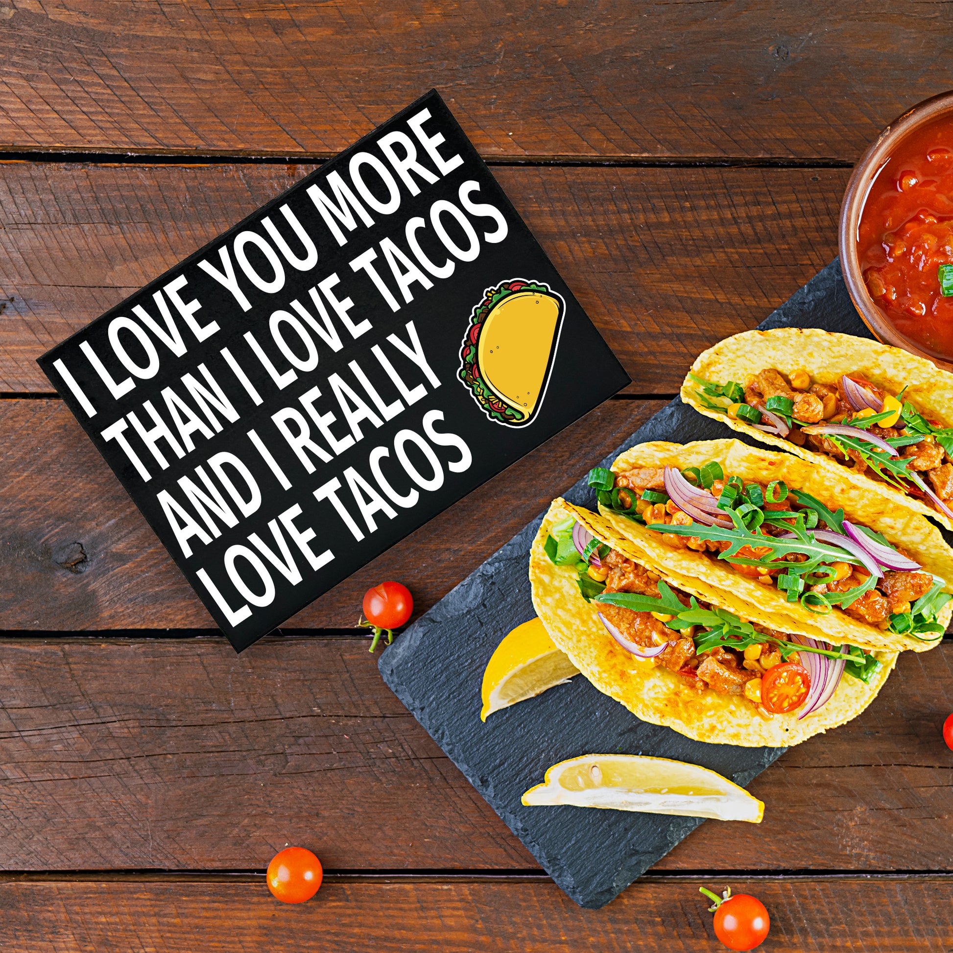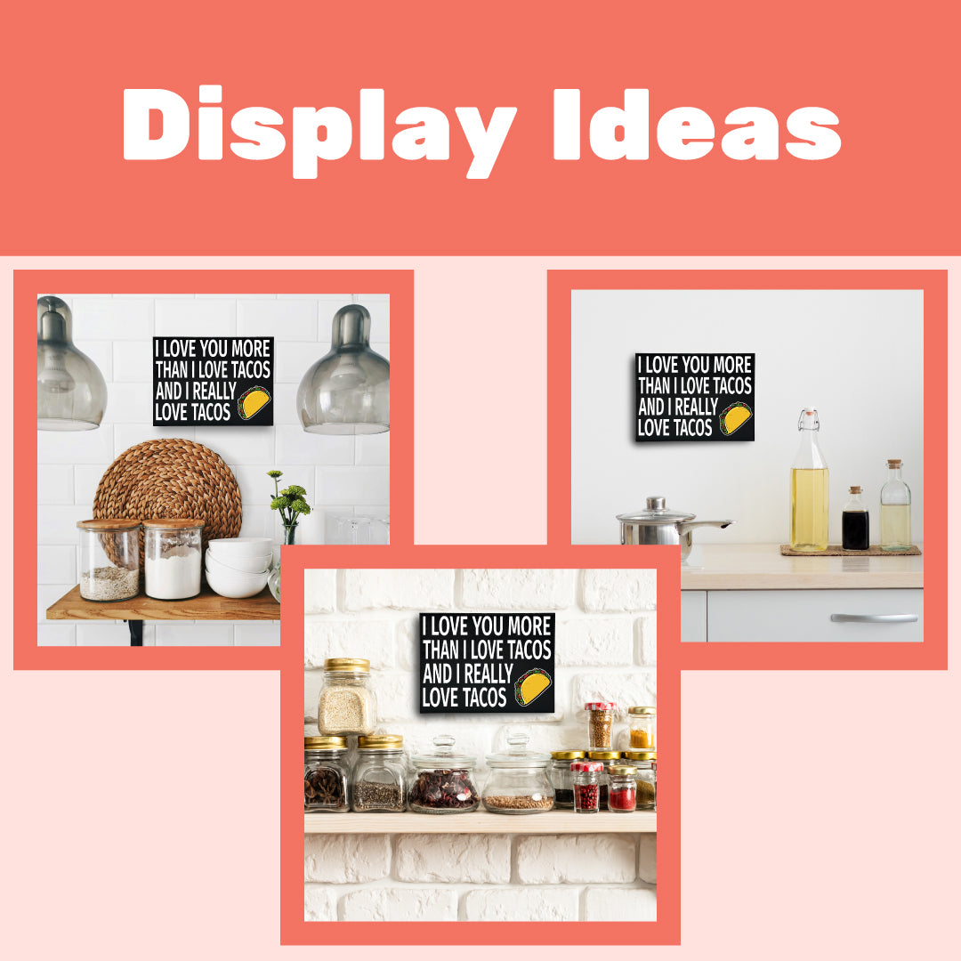 Charming Taco Lover Gift: Delight friends or family with this humorous "I Love You More Than Tacos" sign-perfect for anniversaries, Valentine's Day, birthdays, or Christmas for those obsessed with tacos.