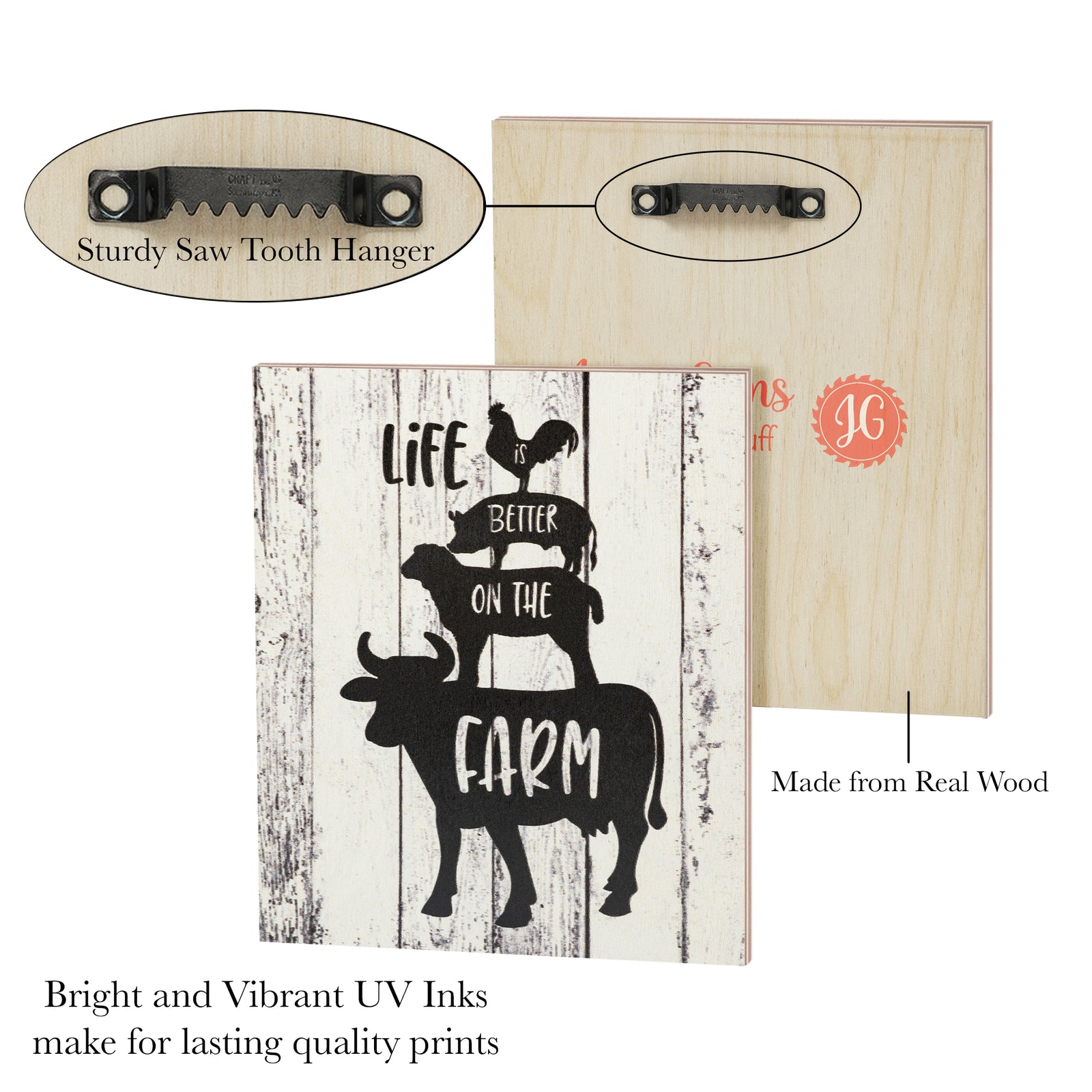 JennyGems Life is Better on the Farm Wooden Sign, Cow Chicken and Pig Decor