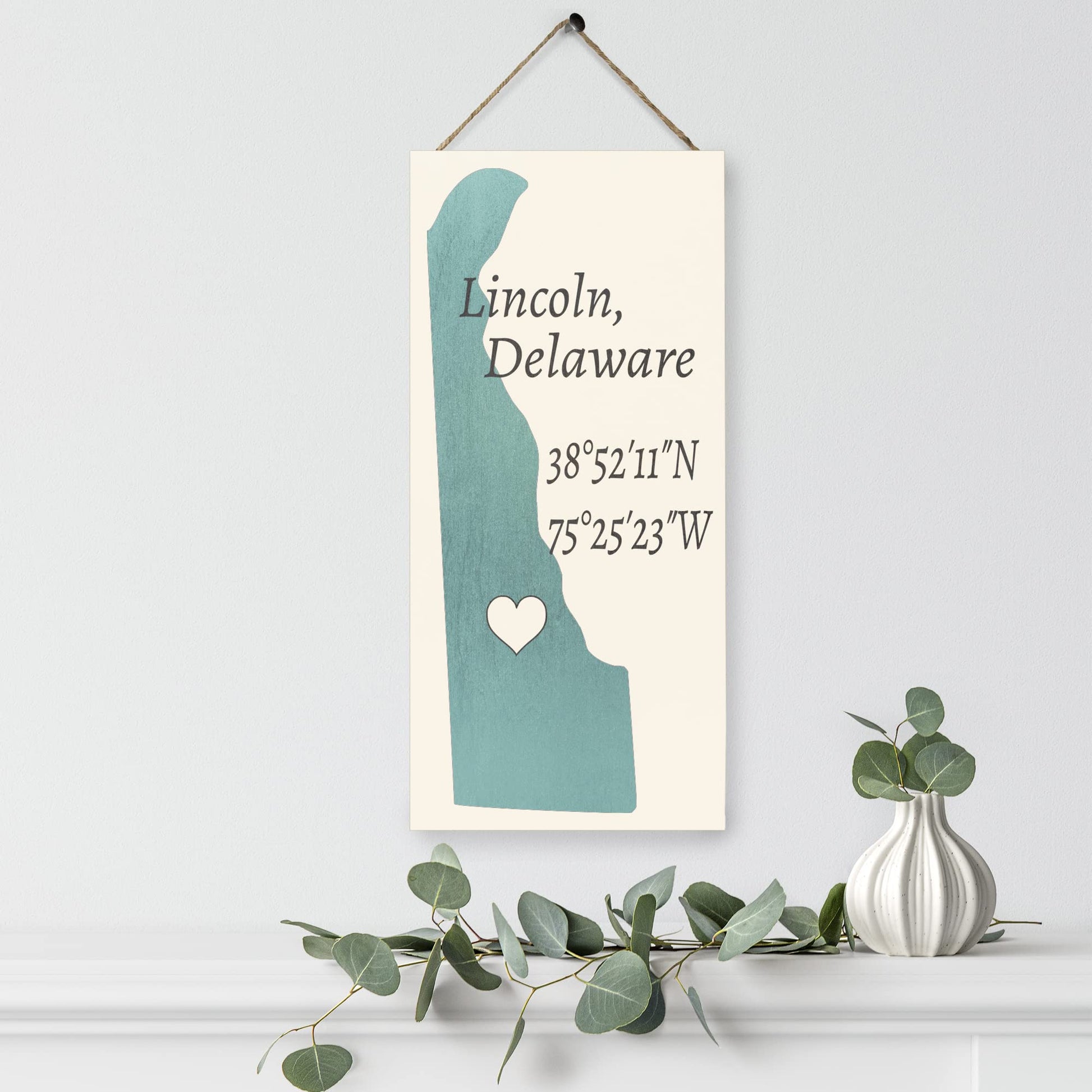 Special decorative wood sign made in Delaware, USA. Representing the beautiful town of Lincoln, Delaware.