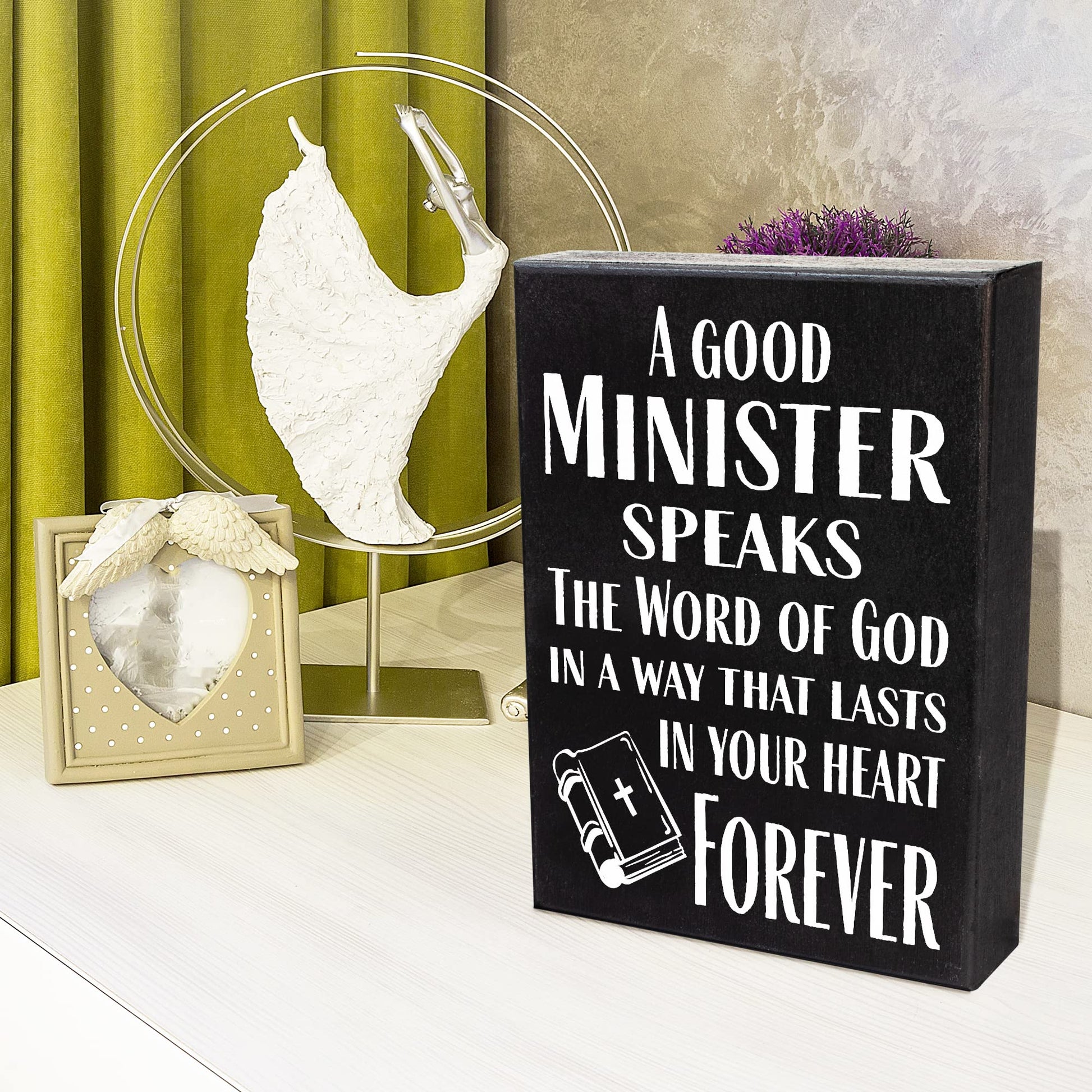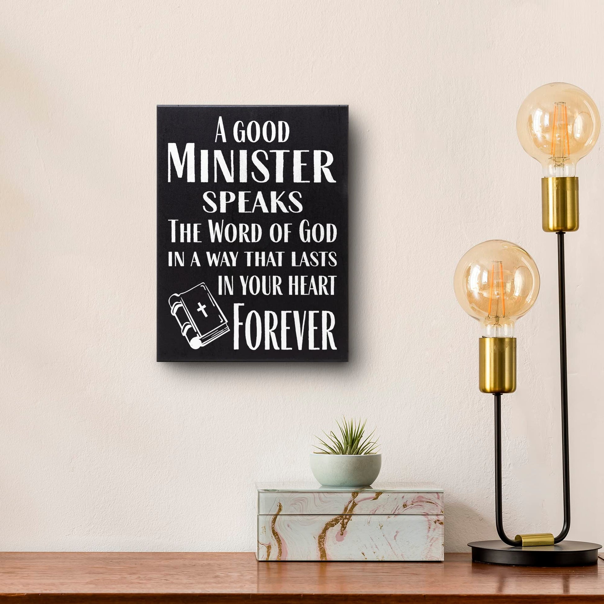 A thoughtful gift sign for pastors, preachers, and ministers. Perfect for Pastor Appreciation Day, Christmas, or any other occasion commemorating ministerial service. This religious gift has inspiring messaging and high-quality craftsmanship, making it an excellent way to express gratitude to spiritual leaders.