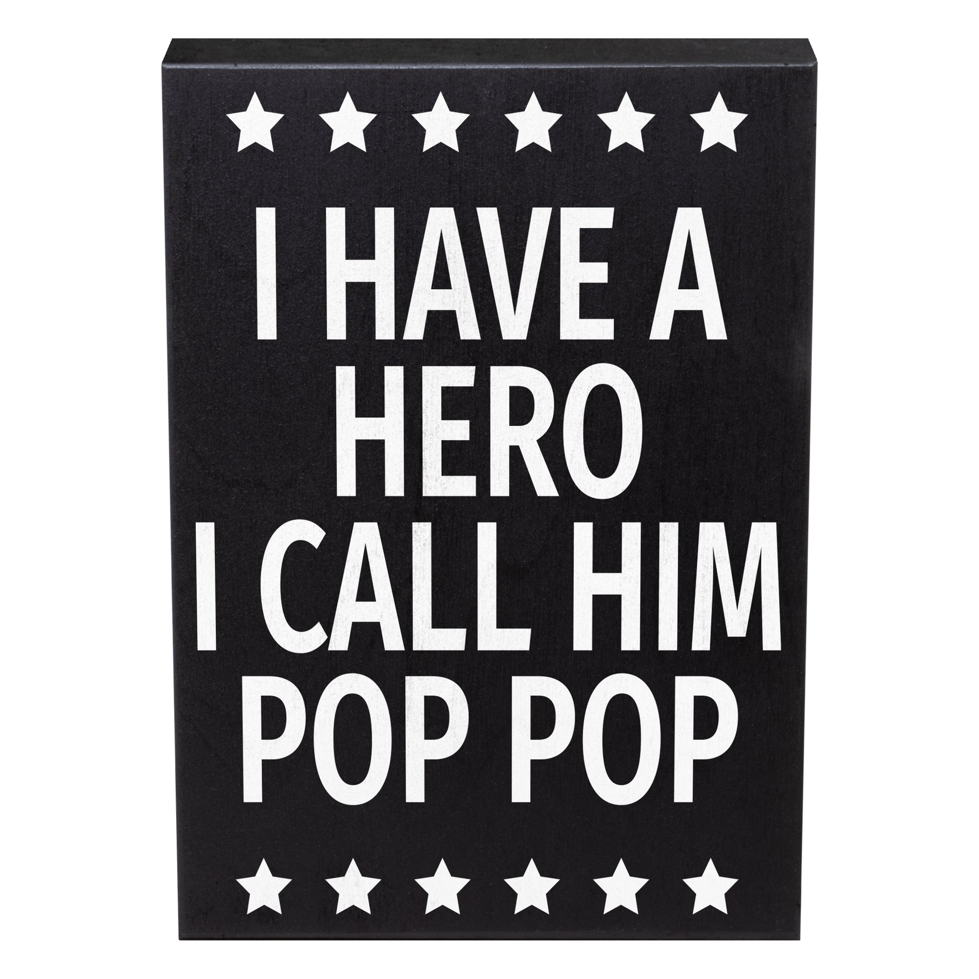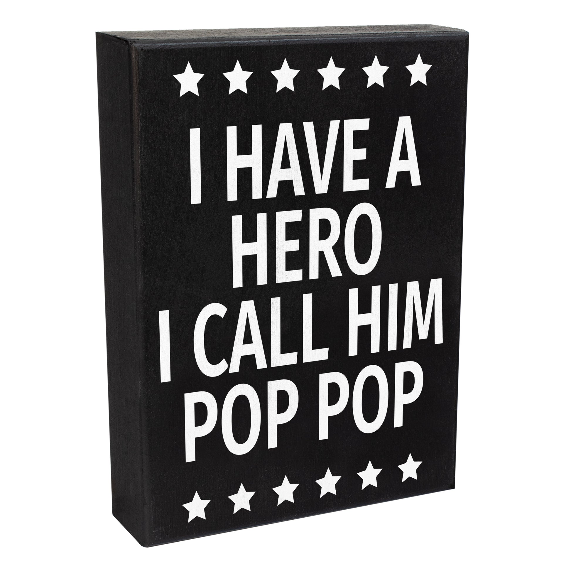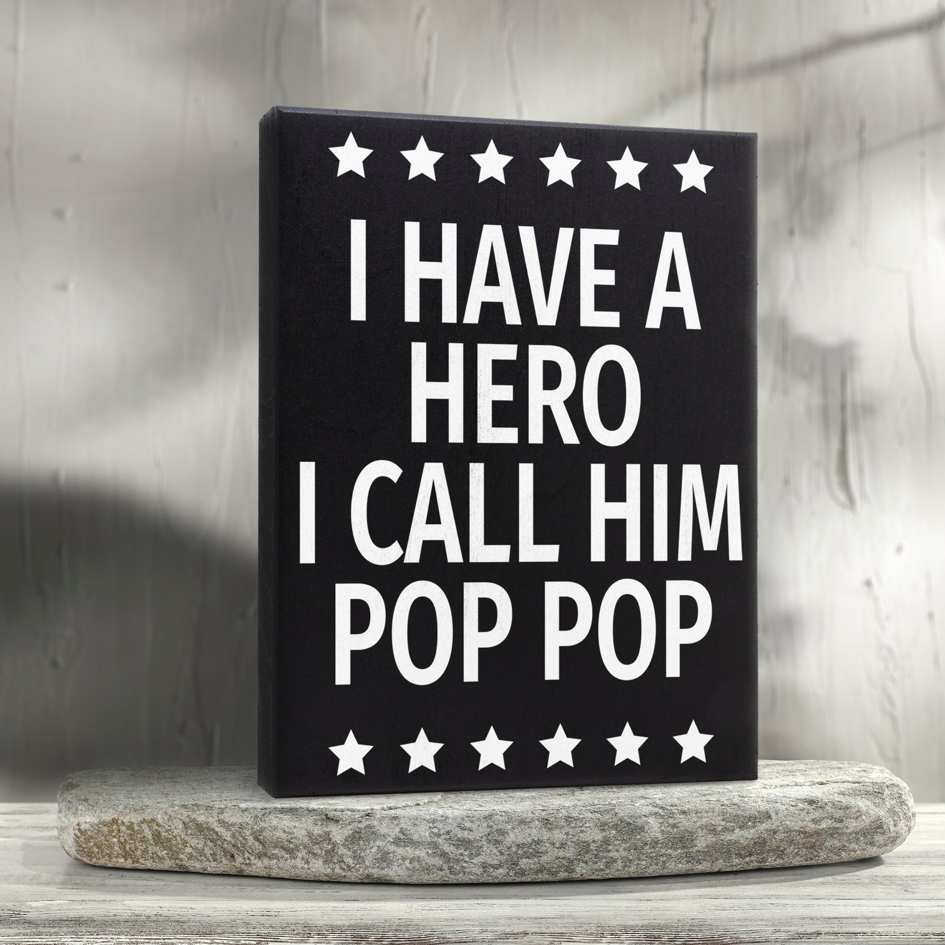 JennyGems Pop Pop Gifts from Grandson Granddaughter, Gifts for Pop Pop, I Have A Hero I Call Him Pop Pop Wood Sign, Gifts for Grandpa