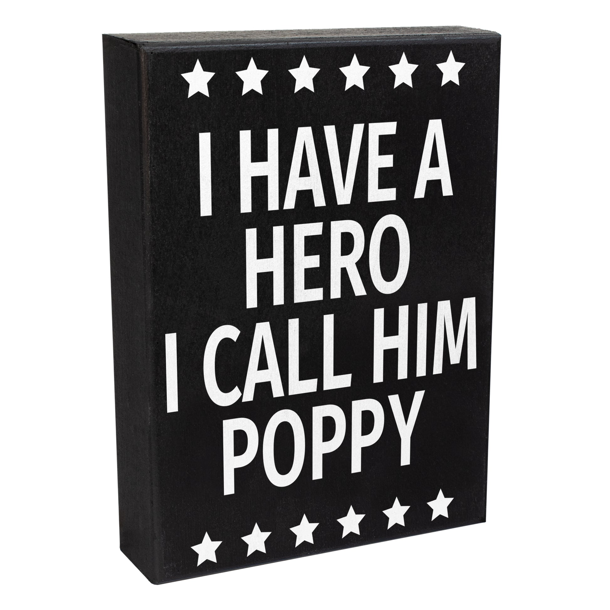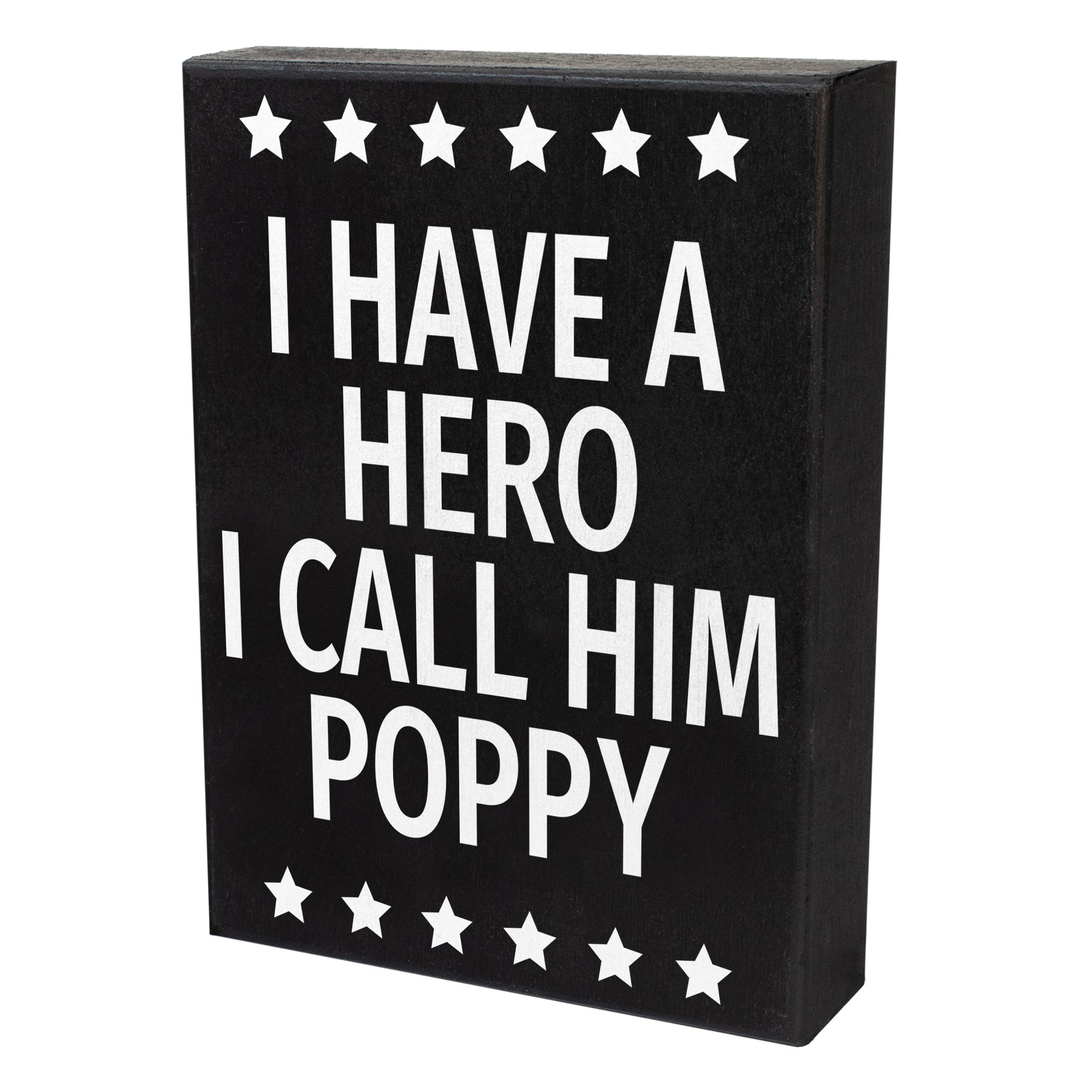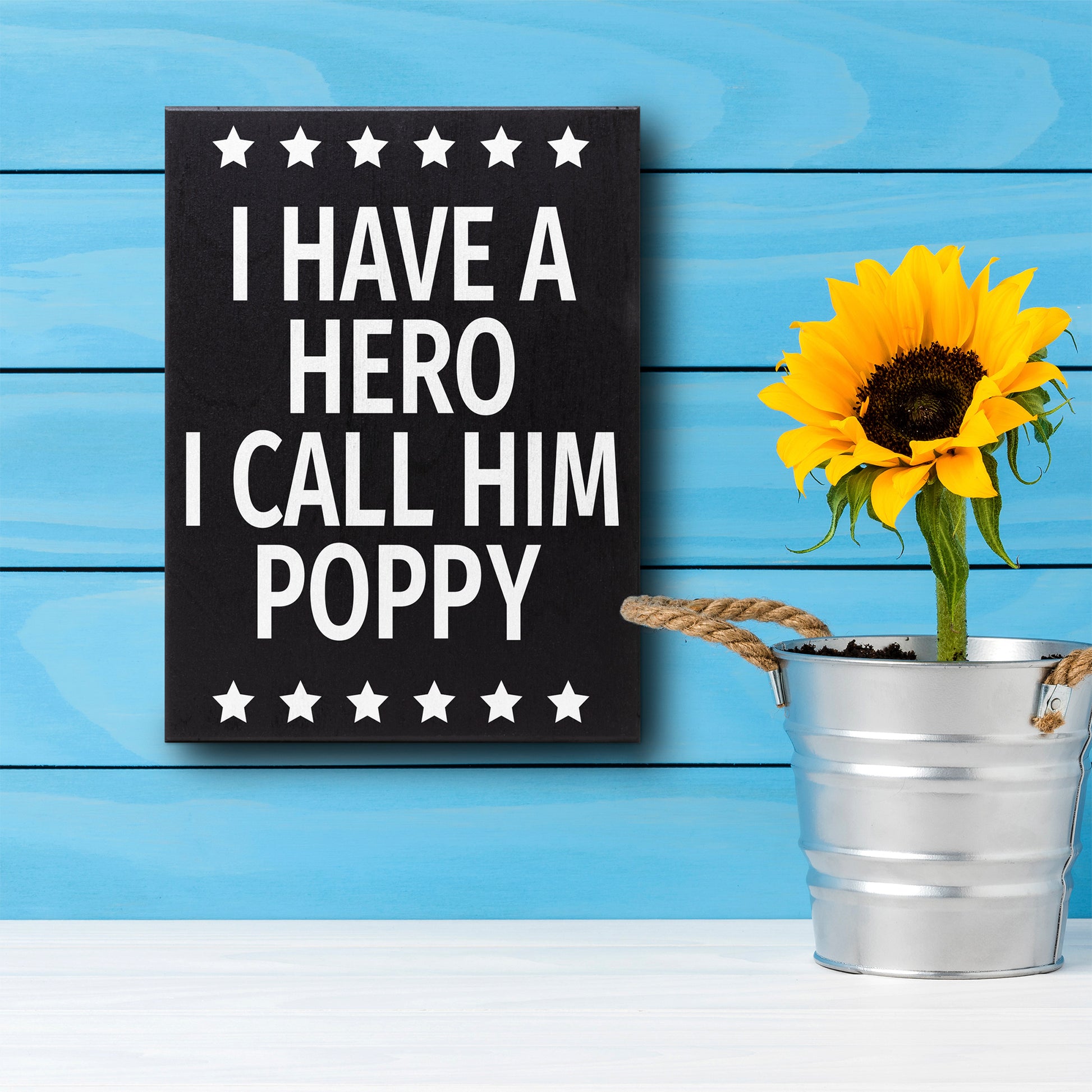 JennyGems Poppy Gifts from Grandson Granddaughter, Gifts for Poppy, I Have A Hero I Call Him Poppy Wood Sign, Poppy Christmas Presents