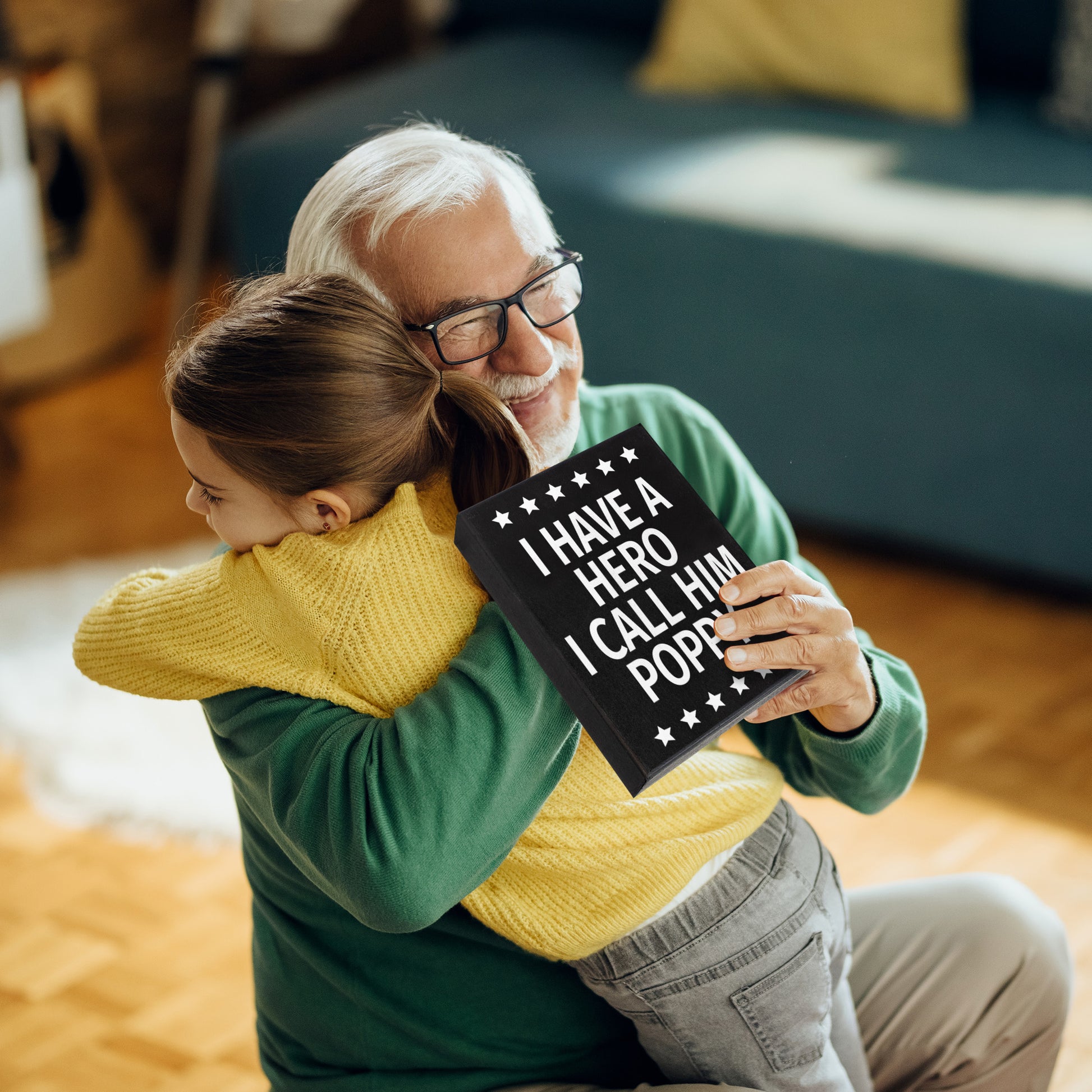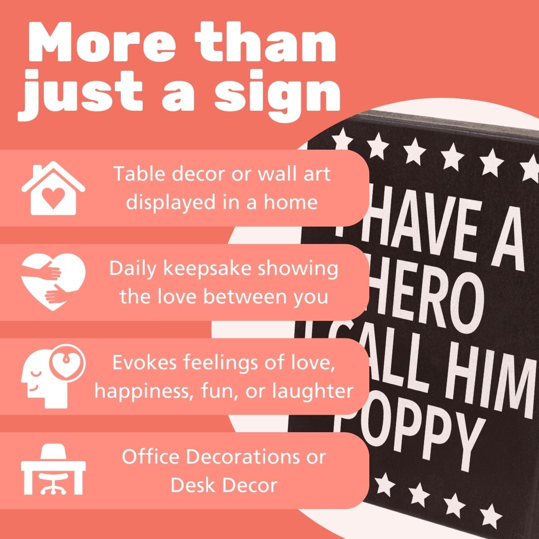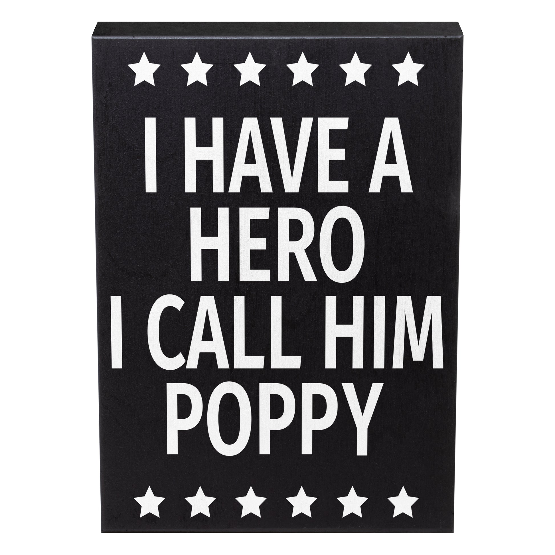 JennyGems Poppy Gifts from Grandson Granddaughter, Gifts for Poppy, I Have A Hero I Call Him Poppy Wood Sign, Poppy Christmas Presents
