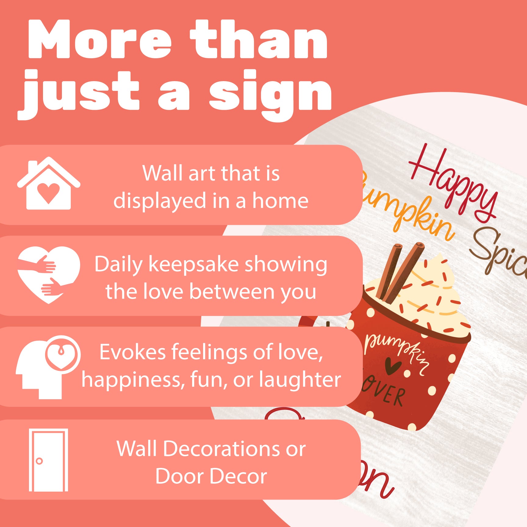 Fall Decor: This pumpkin spice decor is a great addition to your home for the fall season. The autumn colors will add warmth to your home through the fall season. Let this sign add the finishing touch to your thanksgiving decorations and pumpkin decor. This farmhouse sign decor will look great in any home with any style decor.