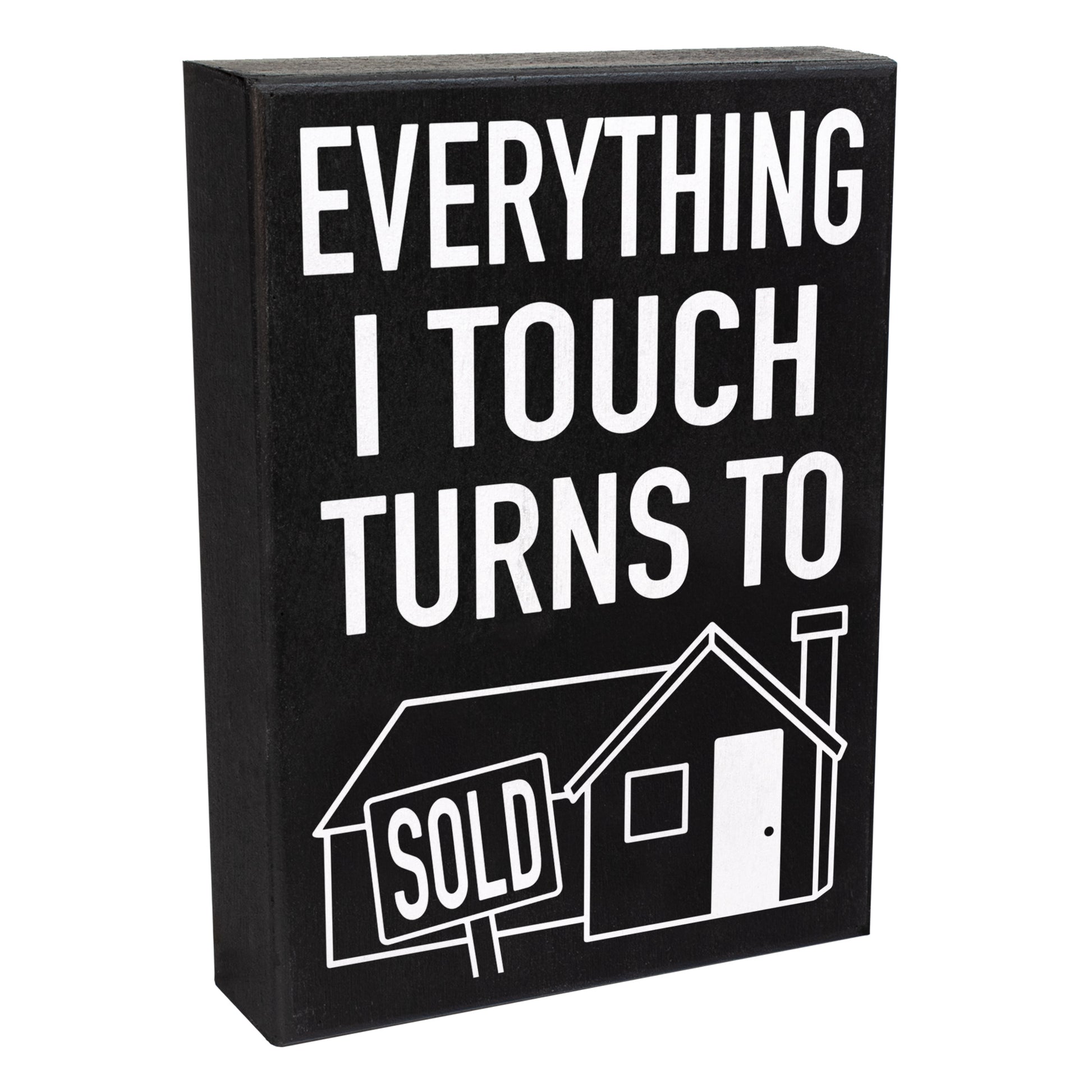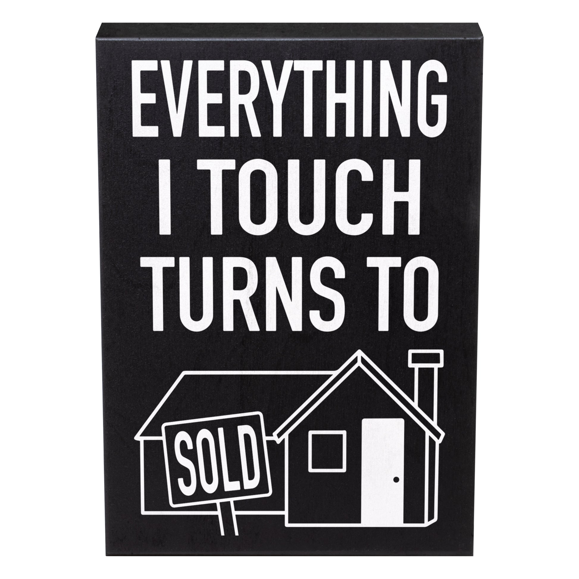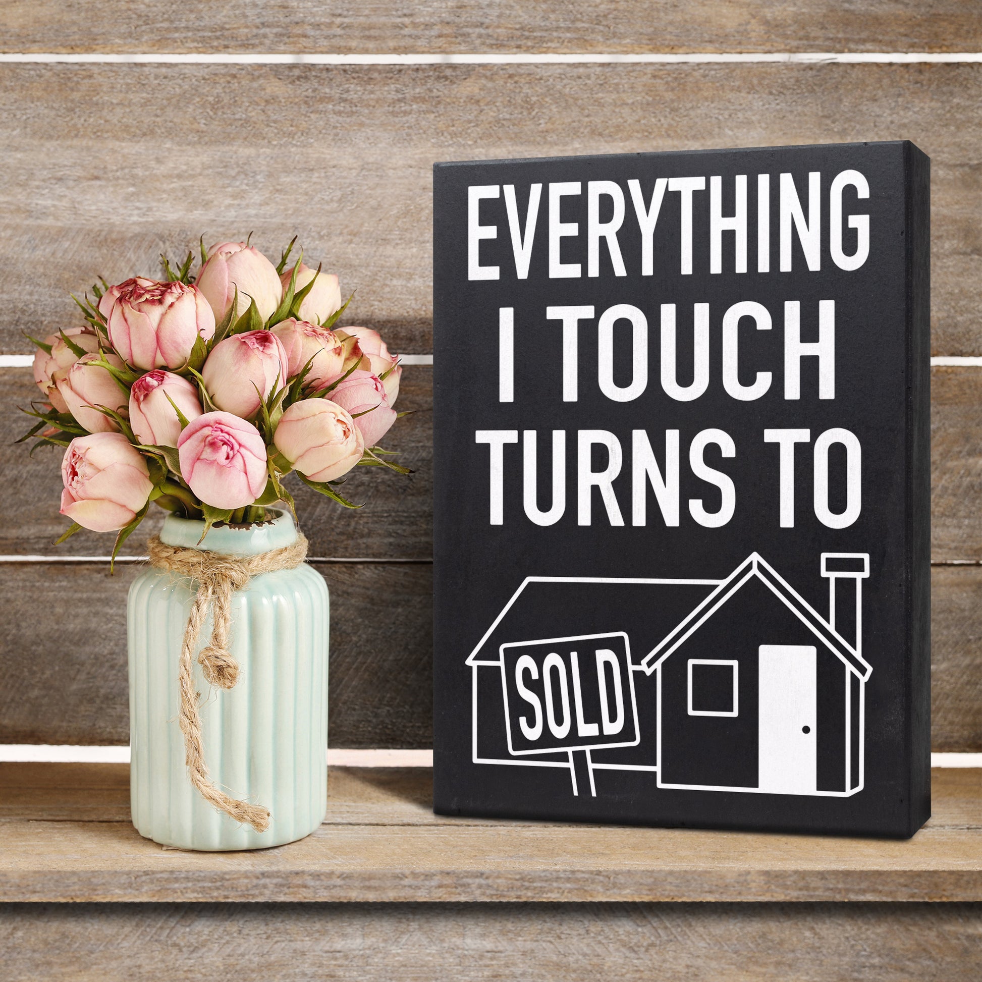 - About: American made wood sign for your favorite real estate agent, broker, or realty office. The quote on this decorative sign reads Everything I Touch Turns To Sold. Dimensions are 6x8x1.5 inches and can stand freely on a flat surface. It also has a hook for wall hanging.