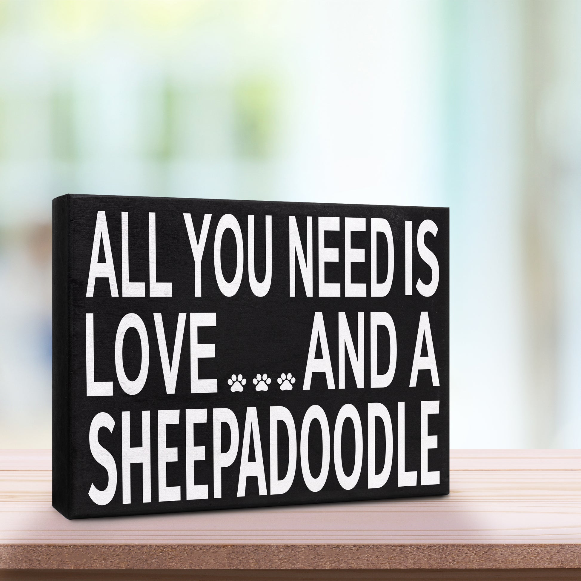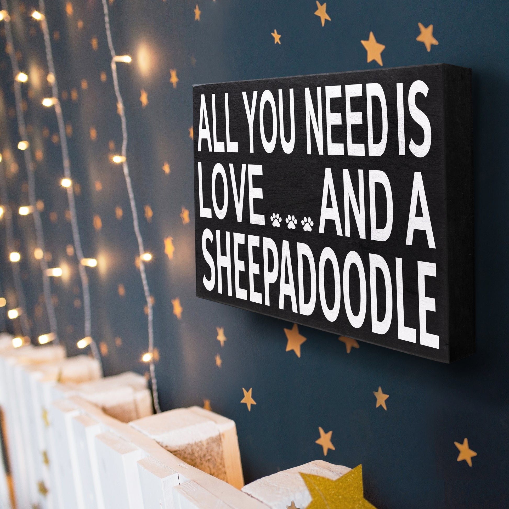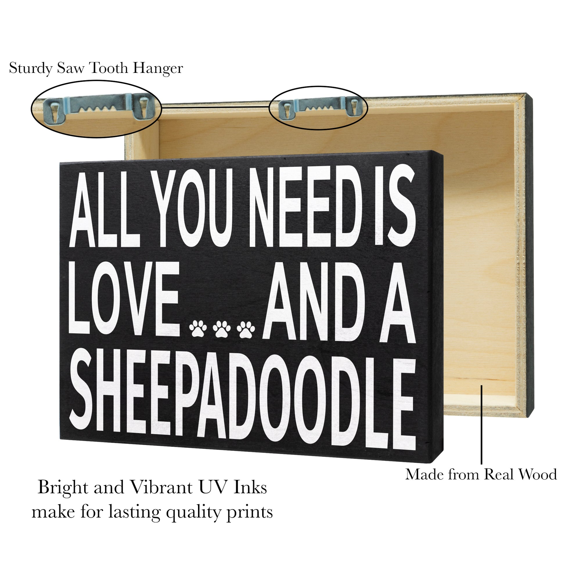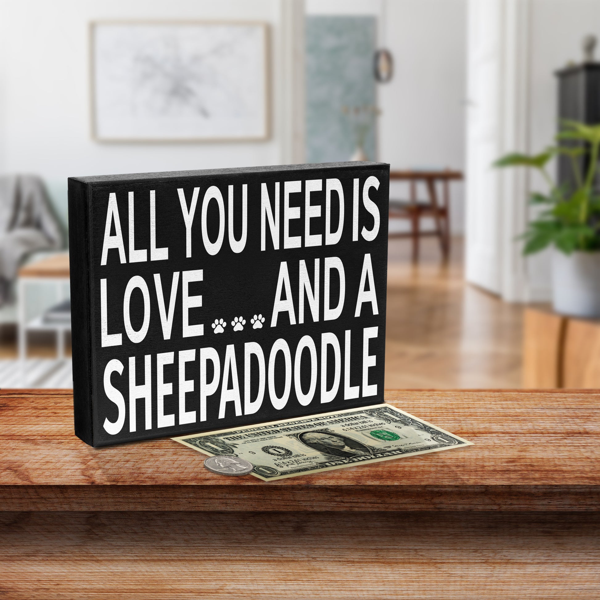 JennyGems Sheepadoodle Gifts, All You Need Is Love and a Sheepadoodle Wooden Sign, Sheepadoodle Dog Mom, Shelf Decor and Wall Hanging, Made in USA